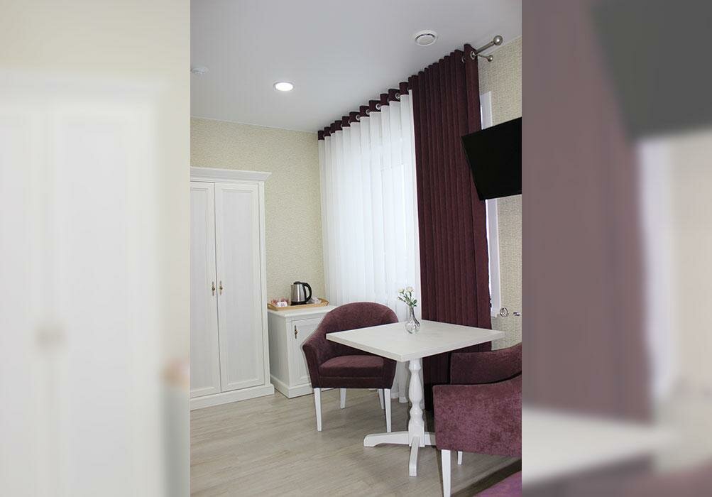 Проживали в номере люкс, номер чистый, белье белоснежное, есть халаты, набор с зубной щеткой. Холодильник, телевизор,фен. Но в номере нет воды, есть чайник, но нет ни чая ни кофе. Завтрак приносят в номер, в одноразовом контейнере. У нас был пережаренный омлет, бутерброд, чокопай и йогурт. В пакете одноразовые приборы и кофе растворимый. При просьбе дать чай, сказали платно. И это при цена номера 4000. Завтрак за отдельную плату