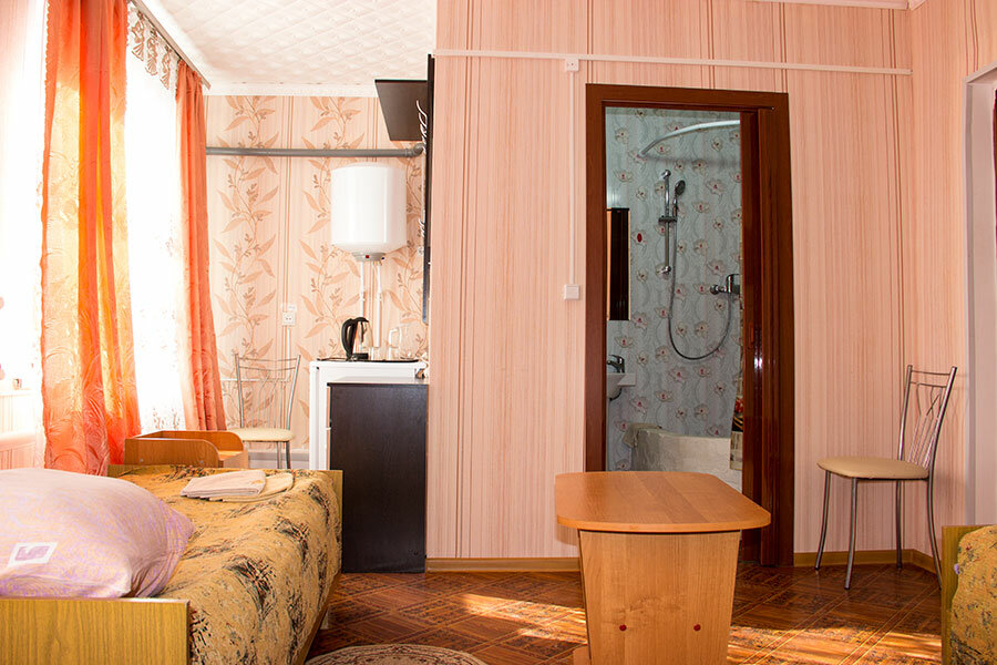 Хороший чистый номер, был на трёх человек, есть холодильник, чайник. Бойлер для подогрева воды в наличии. Запахов посторонних нет.
