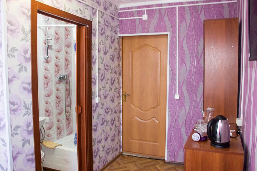 Ну это не гостиница, это ночлежка. Уровень деревенского общежития. Мы каждый год едем на отдых, и гостиниц не мало повидали…но эта… Такого ужаса не было ещё. Я не знаю, где вообще берут такие кровати, про туалет и душ тут уже писали…ну нет слов. Тетя на ресепшене правда старалась как могла, к ней претензий нет, но железная лестница в номера, это же просто угроза для жизни, ну так нельзя. Кафе на общем фоне ещё нормальное, ужин на 3 человек — 1000., Еда как в столовой, но никто не отравился. Цены за номер как в нормальной гостинице, ну в общем, если есть возможность, поищите другой ночлег.
