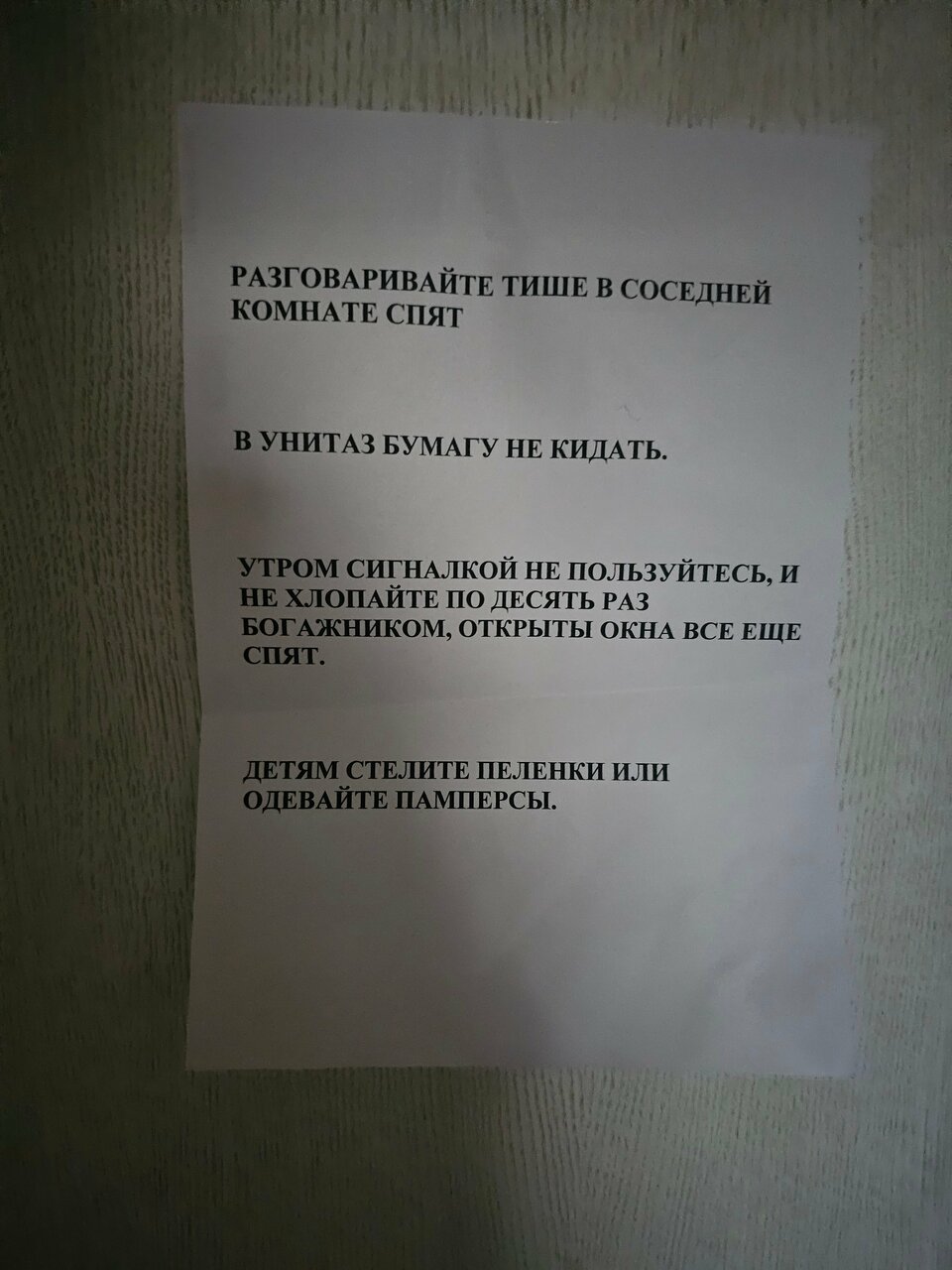 Впечатления остались негативные, комната была в обычном доме, мебель старая- пахла стариной (сыростью). При брони у нас уточняли сколько человек — цена была выше так как ‘все же моются’. А на утро нас ждал сюрприз- не помыться, не в туалет сходить! Воду просто отключили! А когда начали требовать часть оплаты обратно — вода чудным образом появилась, но тоооооненькой струйкой, что помыться невозможно было! А потом Вам расскажут сказку про оператора который забыл утром кнопку нажать, поэтому и нет воды, смешно просто.