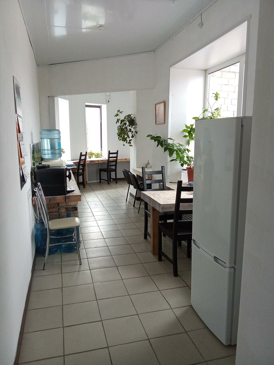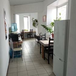 - Добрый и отзывчивый персонал.; Скромный, но приятный вид из окна.; Уютный дизайн.; Наличие кухни с посудой, холодильником, микроволновкой, чайником.; Тишина.