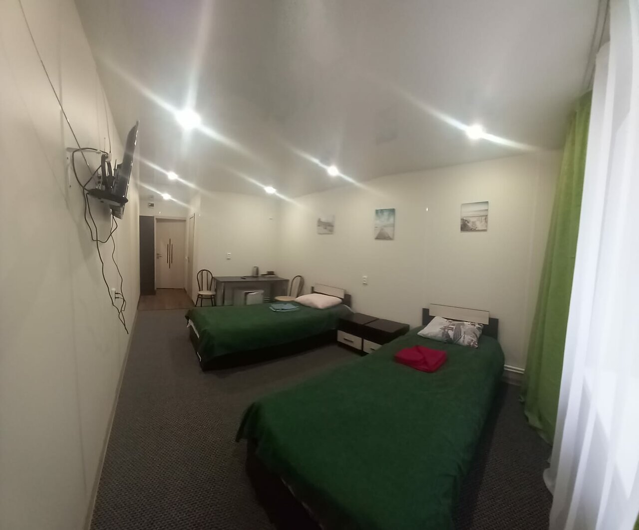 Плюсы: Нет расчетного часа, выезд через 24 часа после заезда. Номера удобные, просторные. Свой туалет и душ, напор воды хороший, висит свой водонагреватель, горячая вода всегда. Скоростной, бесплатный wi-fi. Есть общая кухня, где можно что-то приготовить. Из минусов: Расположение на окраине, рядом лесопилка, но посторонние звуки не мешали. Телевизор работал без звука. Общее впечатление положительное. Буду останавливать еще. Спасибо за прием!