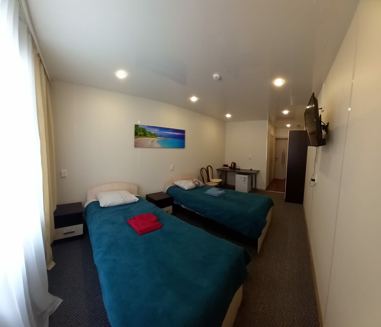 Хорошие номера. Все есть для проживания. Тихо. заказывали завтрак и ужин, всё по домашнему. Принесли в номера, но есть столовая с тв, где можно спокойно посидеть. Стоянка большая под камерами. Администраторы спокойные, доброжелательные. Ценник разумный по сравнению с другими в поселке. Большой плюс ТВ 300 каналов есть чем вечером заняться и высокоскоростной wi-fi