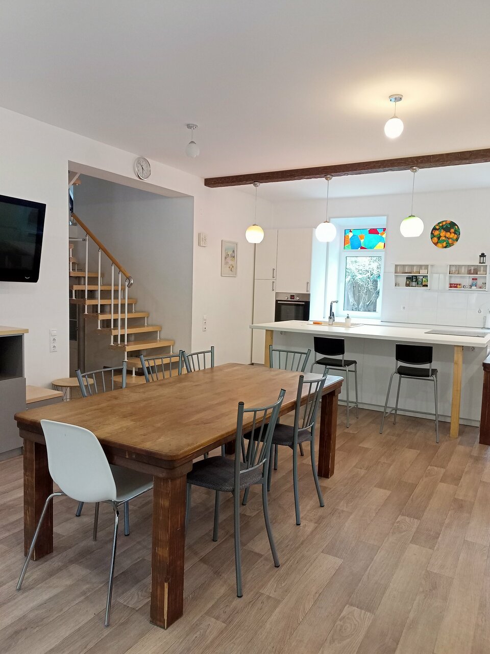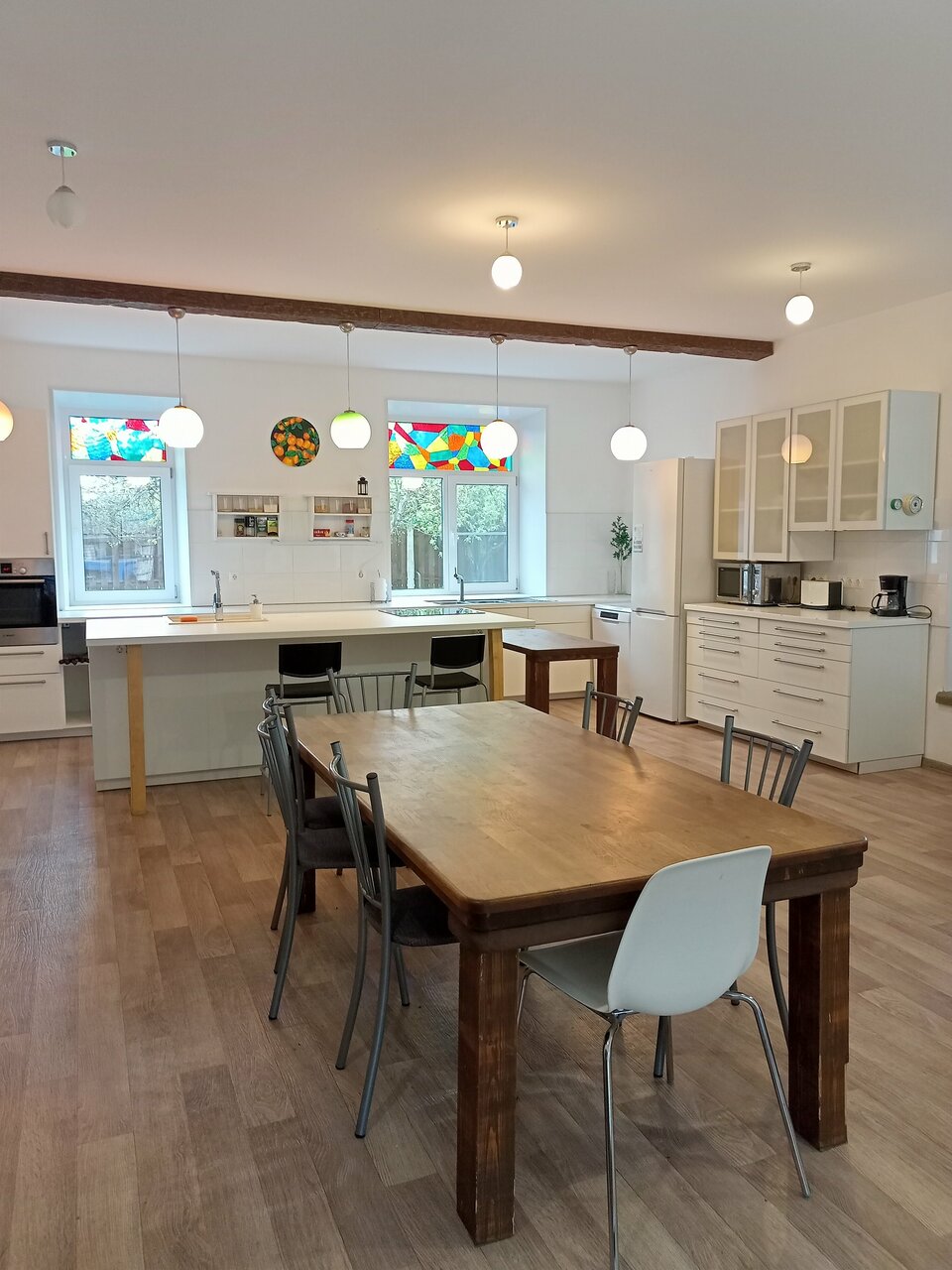 Чудесный светлый, уютный дом. Зона кухни-гостиной просторная с большим столом и удобной кухней, на которой есть все (от посуды и электроприборов до чая/кофе/какао, макарон/круп и проч.) В доме много комнат и спальных мест. Очень удобные матрасы, подушки и качественное постельное белье из х/б. Один душ, в котором есть полотенца на всех, гель для душа, и даже запасные зубные щетки. Лейка душа приятная, напор воды хороший, горячей воды хватало на всех. Большая огороженная территория, с террасой, парковкой, мангалом. Замечательные хозяева! Было легко и приятно общаться как на этапе бронирования, так и при проживании. Дом у леса однозначно рекомендую!