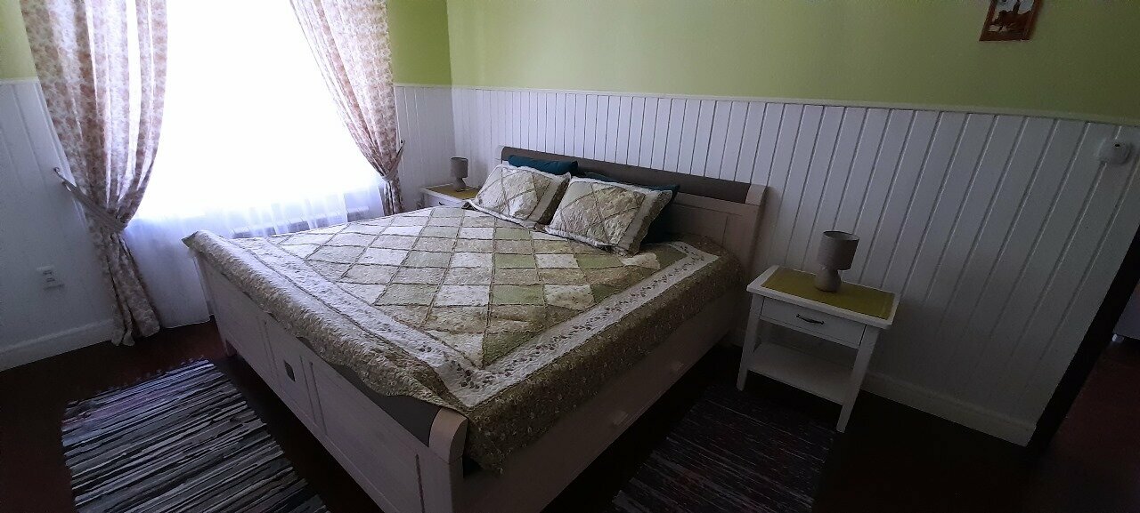 Локация удачная, находится рядом с Михайловским и Тригорским. В апартах места много , при 6 и местном размещении, мы спокойно поместились компанией 8 человек. Радушный, ненапряжный хозяин, посуды много, горячая вода без перебоев на всю компанию, белье чистое, полотенец хватило всем. Единственное неудобные спальные места, но нам все понравилось вполне норм на одну ночь