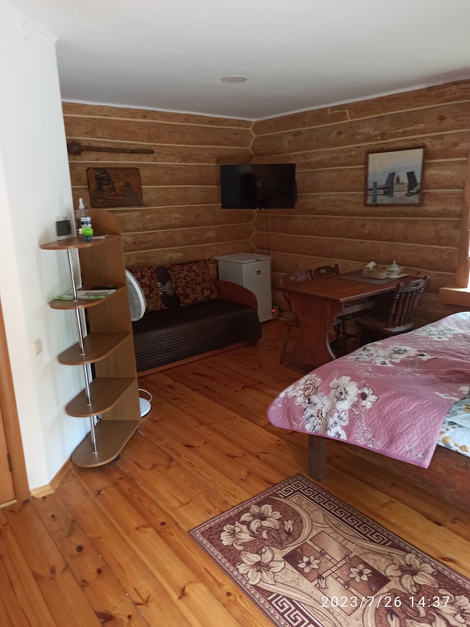 Отдыхали семьей: двое взрослых и дочь. Сняли в последний момент на конец новогодних каникул Номер Добрыня Никитич. Номер — это комната большой избы со своим отдельным входом, санузлом (душевая кабина, туалет, раковина, шкафчик). Большая двуспальная кровать с суперудобным матрасом и широкий диван. Кухонный уголок с микроволновкой и посудой. Большой обеденный стол. Все очень чисто, уютно и по-домашнему с крыльца видно Святогорский монастырь, очень тихо вокруг при этом в пешей доступности от кафешек и магазинов Пятерочка и Магнит. С удовольствием гуляли не только по Пушкинским места , но и по вечерам около дома. Огромное спасибо за гостеприимство и уют! Мы вернемся летом!