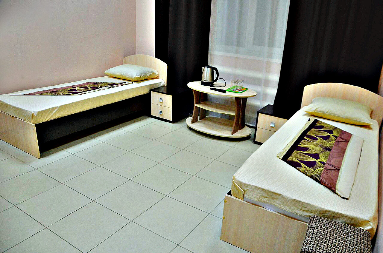 Эконом класс четырёхместный. В номере 4 одноместные кровати, тумбочка, холодильник, сплит система, TV, Wifi. C общим душем/туалетом на этаже.