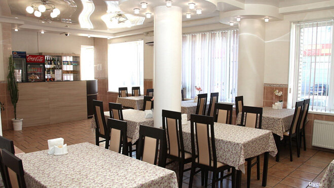 В отеле есть ресторан, кафе и сауна. Завтрак подается по меню. Время заезда и выезда — 12:00.