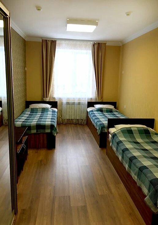 Небольшая гостиница. Тихо уютно спокойно. Отличный вежливый персонал. В номере сделан ремонт чисто мягкие кровати. Имеются прикроватные тумбы шкаф для одежды. Холодильник кухня Цены адекватные. Советую. Эта гостиница достойна адекватных гостей.
