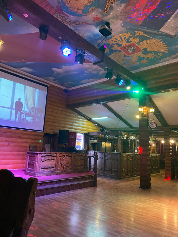 Территориально — расположение эстетически не очень, хотя подъезд удобный. Зато внутри всё вполне соответствует задачам: большой банкетный зал с хорошей аппаратурой и акустикой легко вмещает 100 и более человек; меня на выбор, цены доступные, один из шеф поваров, Артём Валерьевич — с отличной репутацией, в частности, по опыту работы в сети ресторанов ‘Ишак’. Потолки высокие. Легко дышится. Просторный танцпол. Для индивидуального отдыха отдельные залы.