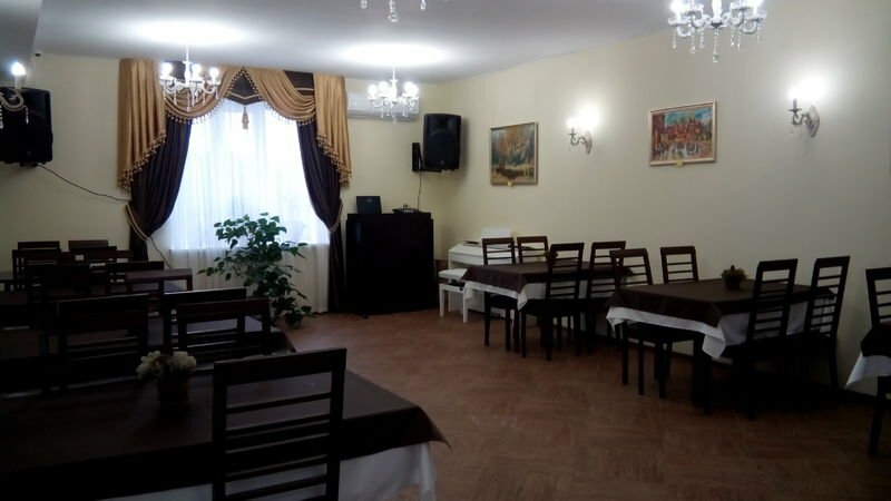 Гостиница на 2 балла. Фасад здания разрушен таблички/вывески нет обозначений никаких. В номере полотенец нет туалетных принадлежностей нет. Холодильника в номере нет. Чайник в номере есть но проверить работоспосбность невозможно питьевой воды нет столовых принадлежностей нет. Магазинов рядом нет только в центре населённого пункта и попасть можно только на автомобили.