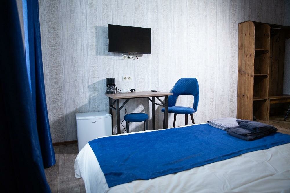 Гостиница уютная, чистенькая, номера не тесные, интерьер симпатичный, много розеток (я много езжу и знаю, что в некоторых гостиницах с розетками в номерах прямо беда!), прекрасный телевизор, на окнах сетки от комаров; кухня тоже просторная и удобная, только холодильник один (в номерах холодильников нет), поэтому места в нём не так много, но ничего, мы всё, что хотели, впихнули. Стоянка для автомобилей удобная, места много. Недостаток первый: очень сильная слышимость. И разговоры, и храп соседей были слышны. Недостаток второй: на соседнем участке орут петухи. Начинают в 4 утра. Но в целом гостиница нам понравилась, мы собираемся остановиться в ней ещё раз. За предлагаемую цену вариант прекрасный.
