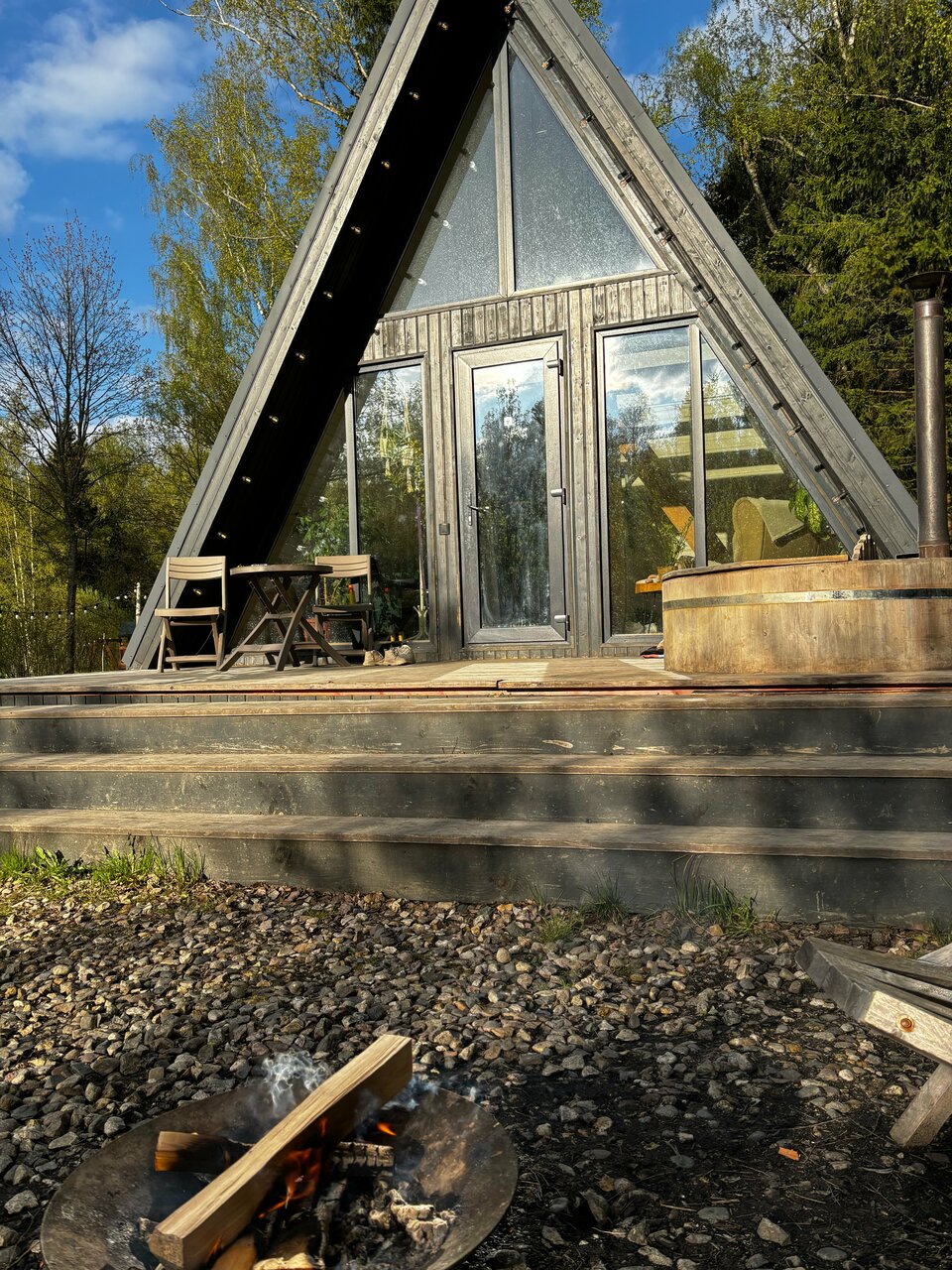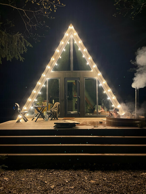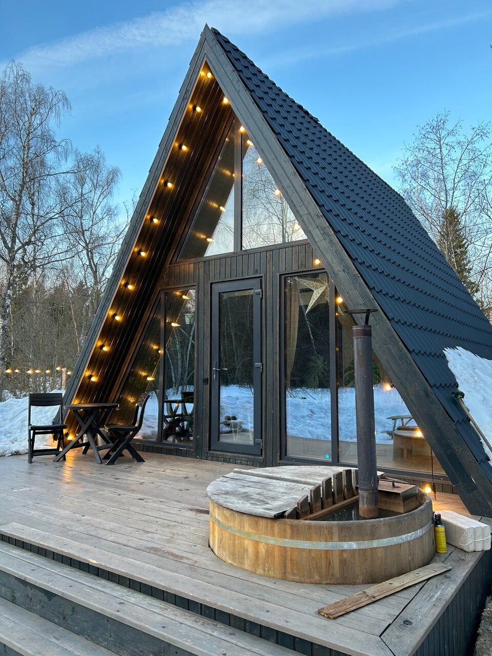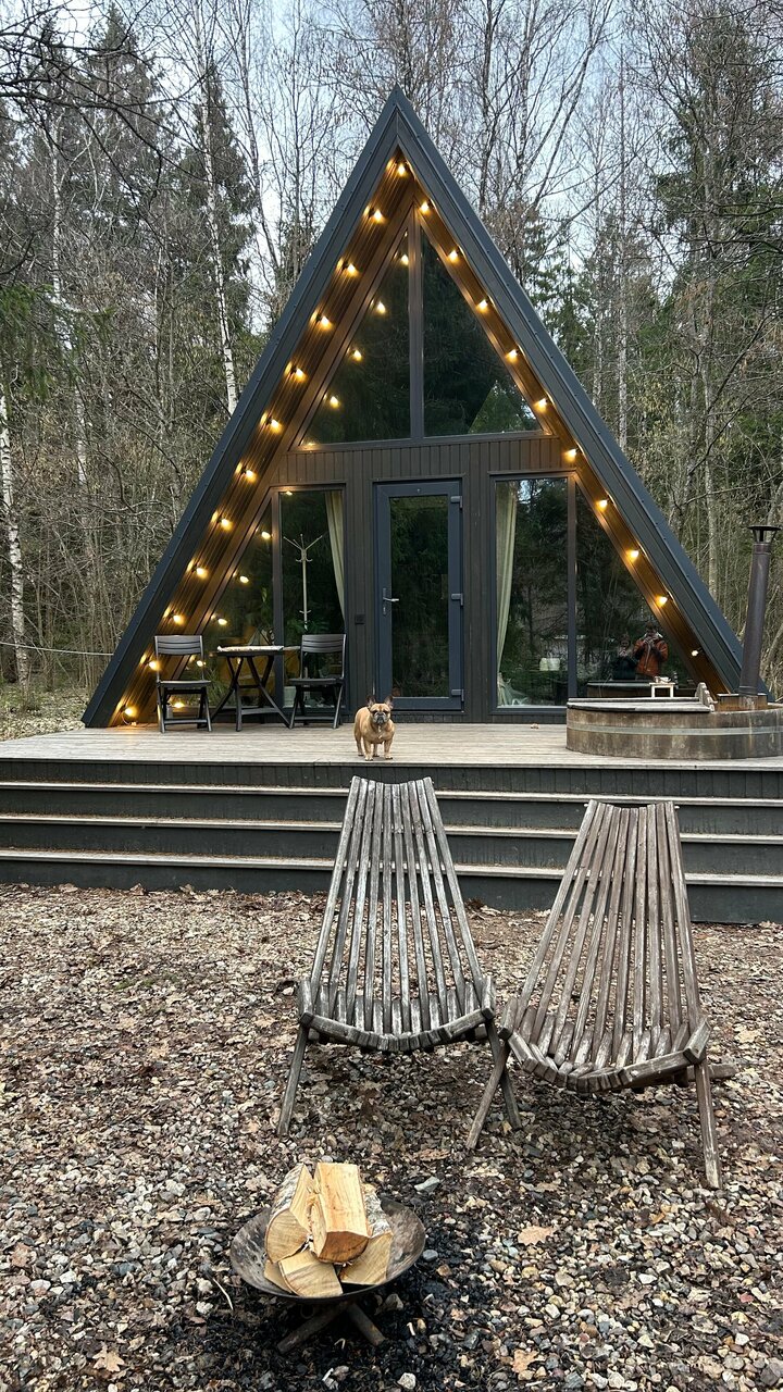 Очень красивое и спокойное место, чудесные интерьеры и приятная природа вокруг. Гостеприимные и дружелюбные владельцы. Но дом а-фрейм нужно брать обязательно с кондиционером, потому что в том, в котором его нет, невозможно спать в теплое время года – дышать просто нечем. Советую попробовать купель, тепла в ней хватает надолго. Приятно сидеть в ней и в жару, и вечером перед сном. Если заказывать завтрак, то лучше уточнять заранее наличие всех ингредиентов, иначе об их отствии вы узнаете утром, когда вам на завтрак не принесут что-то из заказа.