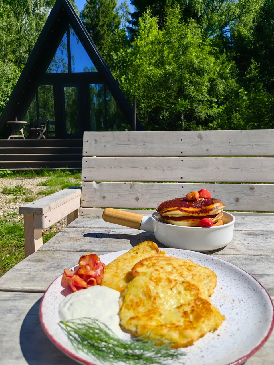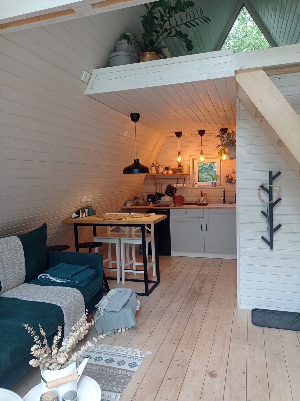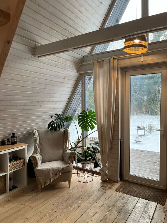 Очень красивое и спокойное место, чудесные интерьеры и приятная природа вокруг. Гостеприимные и дружелюбные владельцы. Но дом а-фрейм нужно брать обязательно с кондиционером, потому что в том, в котором его нет, невозможно спать в теплое время года – дышать просто нечем. Советую попробовать купель, тепла в ней хватает надолго. Приятно сидеть в ней и в жару, и вечером перед сном. Если заказывать завтрак, то лучше уточнять заранее наличие всех ингредиентов, иначе об их отствии вы узнаете утром, когда вам на завтрак не принесут что-то из заказа.