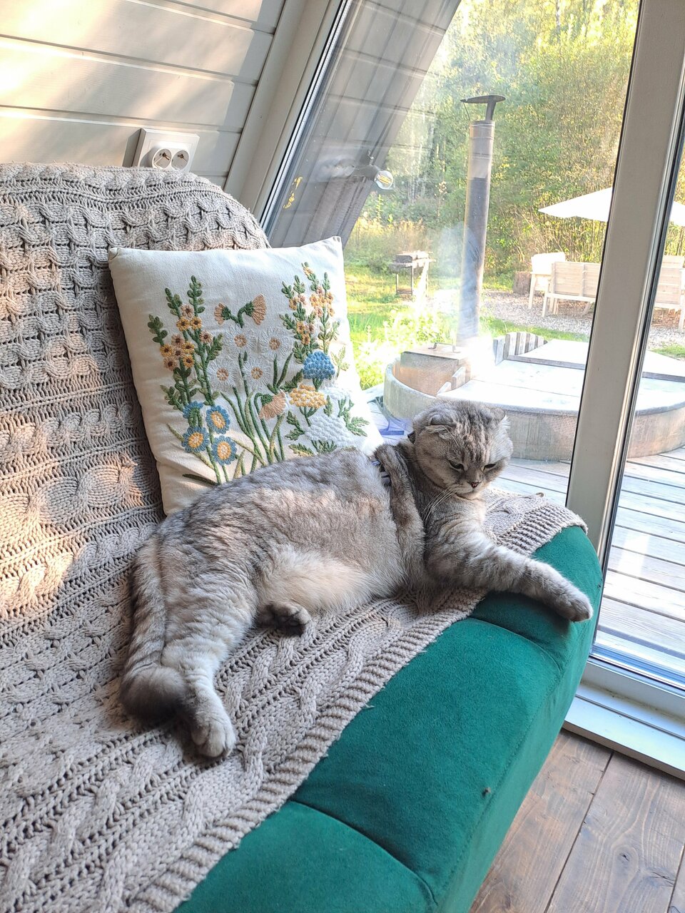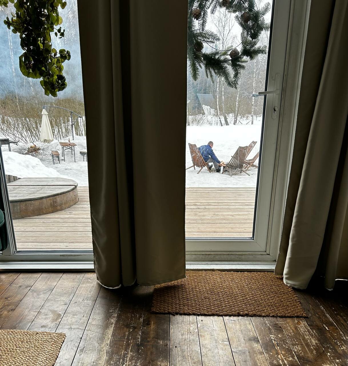 Отдыхали в домике с 9.01 по 11.01 и это полный восторг. Очень уютная атмосфера и такое внимание к деталям. В домике есть все, для комфортного проживания, уютная кухонька со всеми принадлежностями, душевая с теплым полом, комплект полотенец, шампунь, гель. Очень порадовало биде. Отличное спальное место, комфортный матрас. Мангальная зона со всем необходимым, летом вообще шикарно было бы там посидеть. Прекрасный вид на природу. Расслабляющая горячая купель с древесным ароматом, зимой прям полный релакс. И конечно же Тефтелька, которая разделила с нами просмотр фильма и создала еще более уютную и семейную атмосферу. Спасибо Вам огромное, что даете возможность реально отдохнуть, мы еще не раз к Вам вернемся