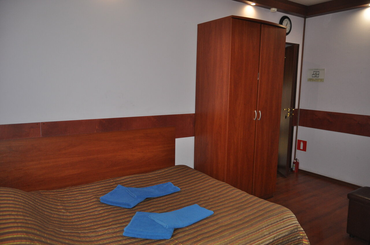- Неудобная двуспальная кровать (соединённые матрасы).