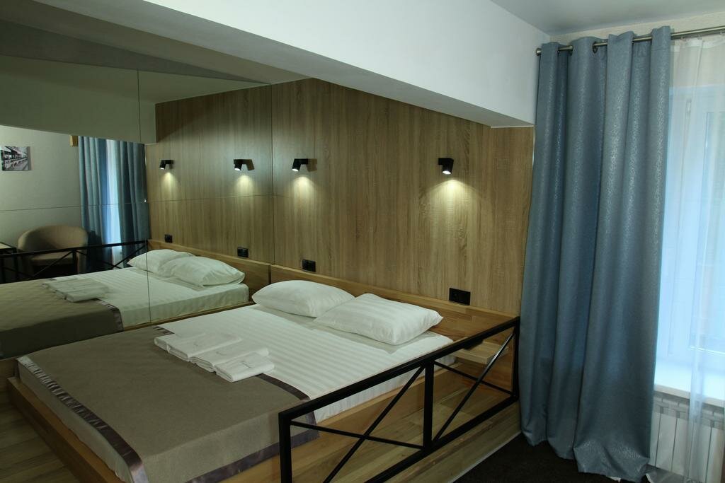 Чисто и уютно. Занимали 2 номера :стандарт и полулюкс. Белье белое. Матрасы удобные. На 1 этаже есть возможность погладить.