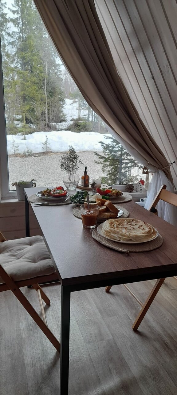 Отдыхали пару дней в этом прекрасном месте. Домик очень теплый, уютный, невероятно красивый. В нем есть все необходимое для проживания, это очень порадовало. Все настолько продуманно. Спасибо огромное! Обязательно приедем еще, хотелось бы летом.