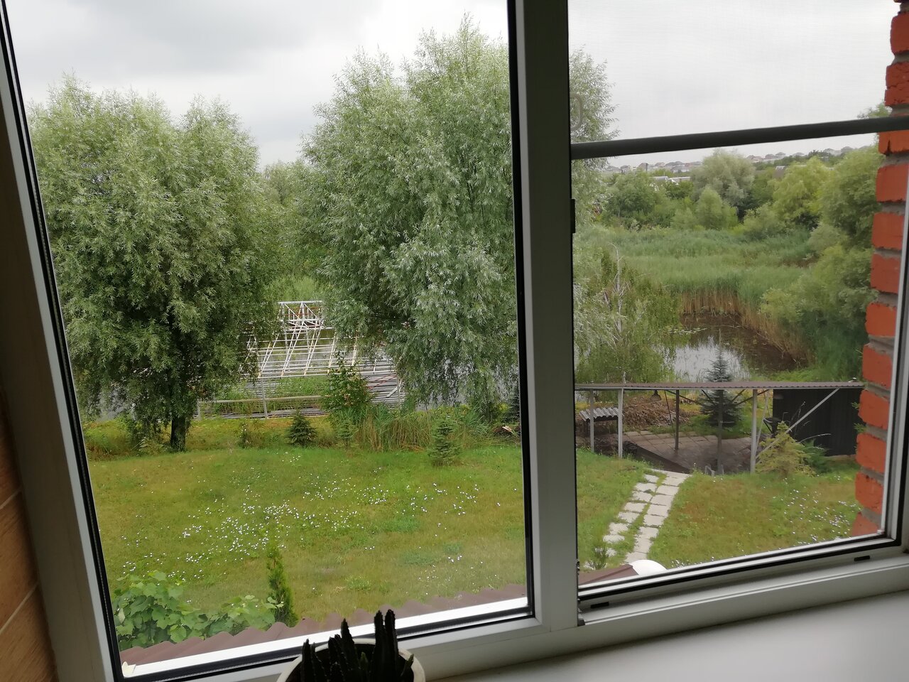 Взял верхний номер (на чердаке) 1800₽. Я так понял это был самый дорогой вариант. Из плюсов: номер просторный, ибо занимает весь этаж. Всё необходимое в номере есть. Удобная кровать, дополнительный диван. Большое окно с видом на пруд внизу и Курск вдали. В ванной — душевая кабинка. Машину можно поставить во дворе. Для постояльцев есть баня. 1000₽/час.