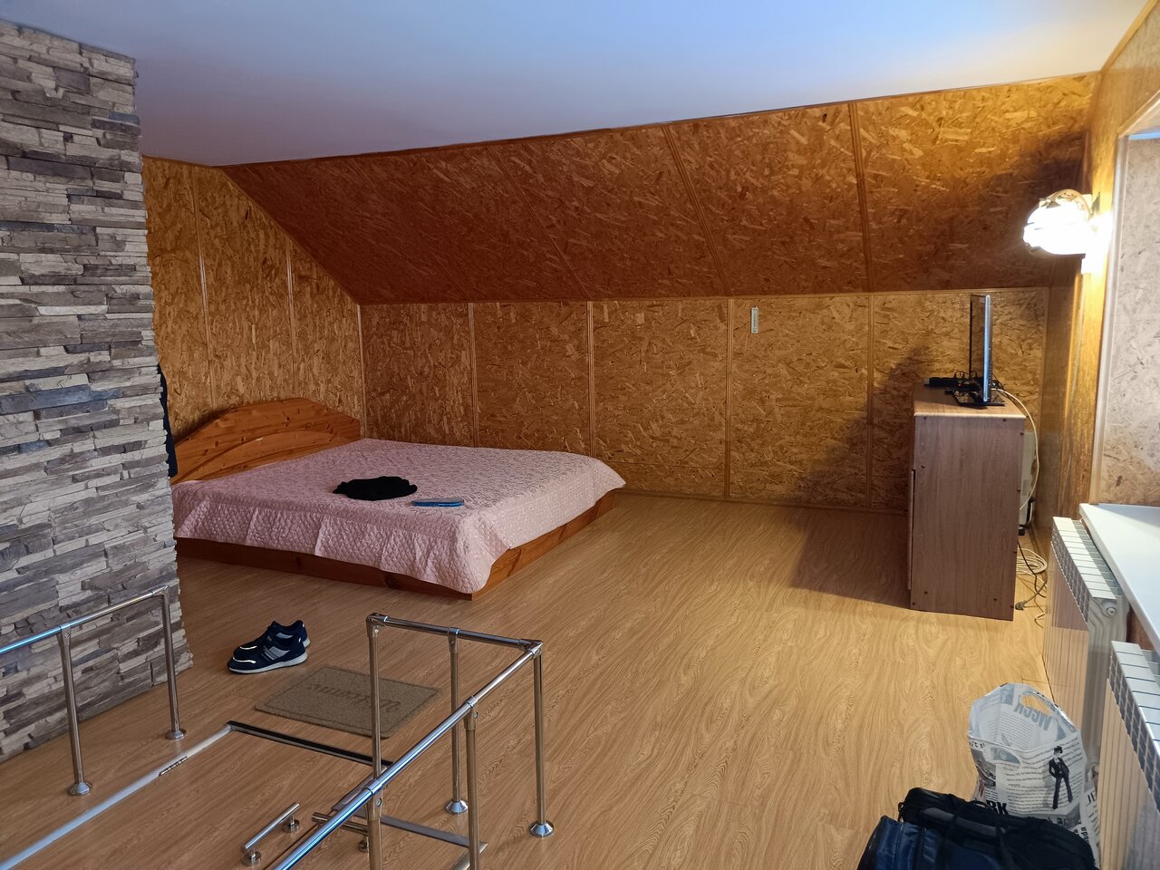 Аккуратно и чисто, номера большие (были в двух). Переночевать в дороге — самое то! Правда на обратном пути предложили бесплатное улучшение номера, мы согласились, а оказалось это по сути чердак с соответствующей лестницей. Ремонт конечно там сделан и все нормально, но под градусом лучше туда не соваться! ))) Да и нам с маленьким ребенком не очень было удобно, могли бы и предупредить! В остальном все отлично, рекомендую!