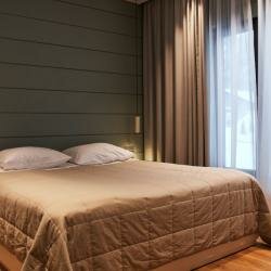 Удобства в номерах: Wi-Fi, телевизор, холодильник, фен, чайник, посуда. Доступны услуги массажа, салона красоты и доставки еды.