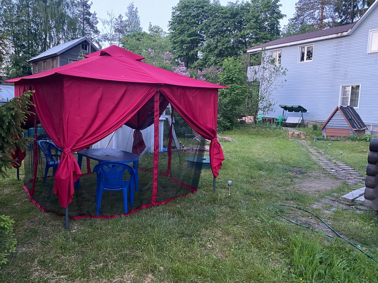 - Территория оснащена качелями, бассейном, мангалом.
