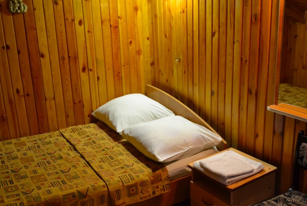 Забронивал номер 3 местный с раздельными краватями, по прибытию сказали есть только с диваном, мол 3-х местных нет. Пришлось снять 2 номера вместо 1. В номере была вода в бутылках питьявая и газированная. Бутылка с газированой была выпита на половину и поставлена обратно, как будто так и было. Мне чесно, по фиг есть вода или нет, но делать вот так, это по моему скромному мнению высший пилотаж. Да ещё у них сайт не работает, коллеги которые забронировали через него были не приятно удивлены