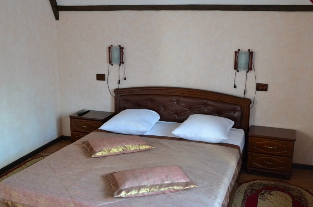 40 номеров, баня, хамам, караоке, кафе, спорт зал, закрытый паркинг. Уютный отель. Спали в номере с настоящим камином и большой джакузи. Неповторимая атмосфера цена номера 2000 за ночевку с 23:00-12:00