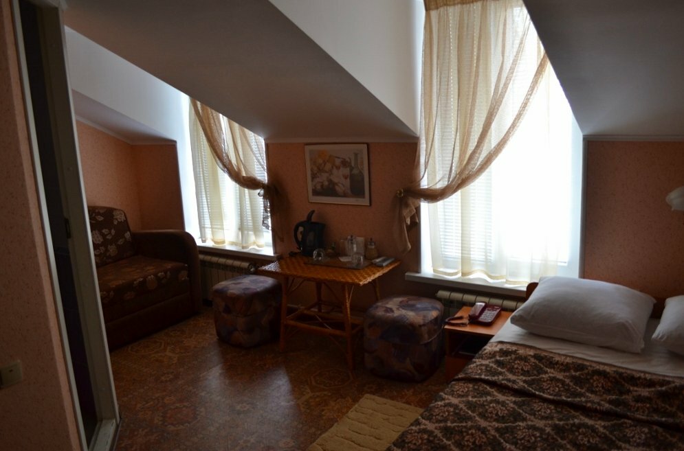 В 2022г уже посещал эту гостиницу пару раз. И все было достаточно неплохо. Но последнее посещение оставило очень неприятное впечатление. Ночевал в начале июня 2022г 2ночи подряд в номере №30 (3 этаж, мансарда) . То, что нет ночных занавесок, и солнце начинает будить со своим восходом уже в 4 утра — это ещё пол-беды. Но главный ‘сюрприз’ произошел во вторую мою ночёвку: я проснулся от того, что кто-то ползет под одеялом! Быстро вскочив и включив свет, я обнаружил в постели МЫШЬ! И это на третьем этаже гостиницы, которая расположена посередине города! Остаток ночи я беспокойно спал с включенным светильником, прислушиваясь к каждому шороху. Утром я об этом рассказал администратору, которая по-охала, но не не принесла никаких извинений от лица гостиницы, не говоря уже о компенсации морального дискомфорта. Цена номера 2500₽ за сутки (если ‘повезёт’, возможен, контактный зоопарк).