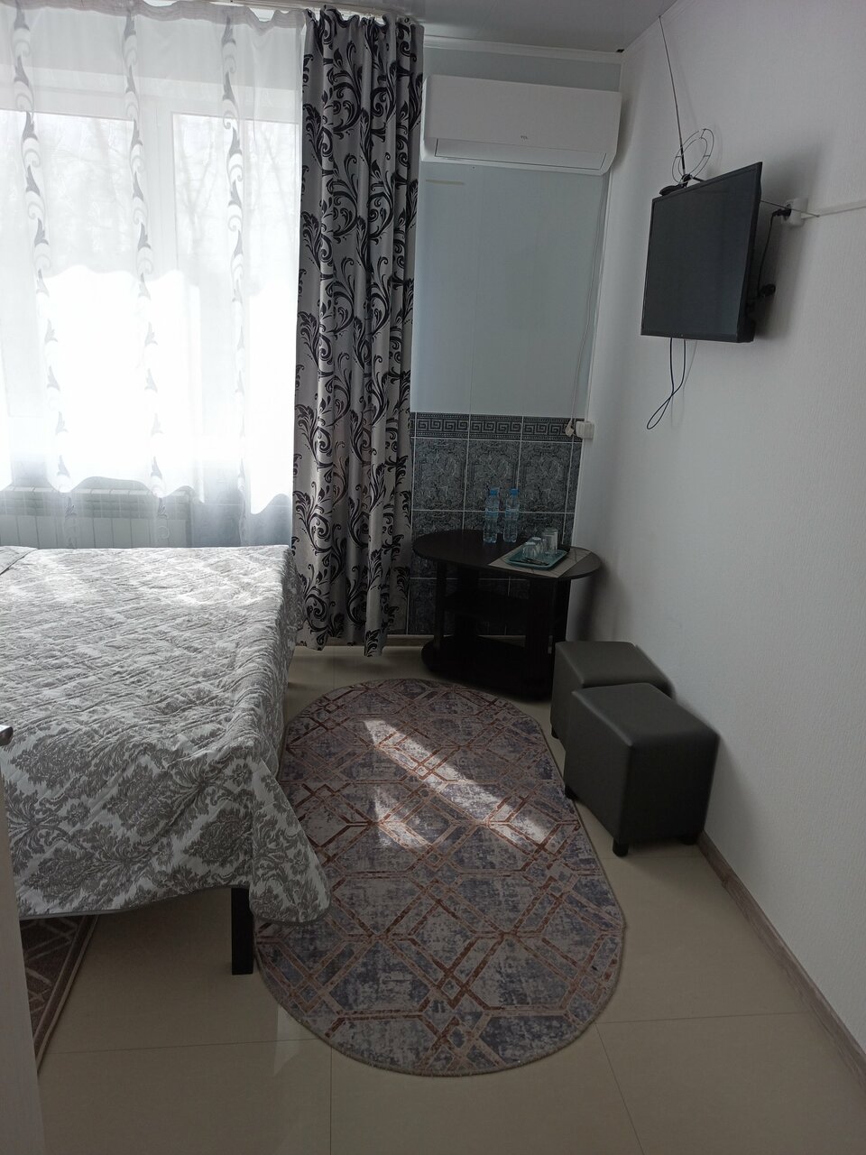 Двуспальная кровать. Санузел: душевая кабина, раковина, унитаз В номере: вся необходимая мебель, телевизор, кондиционер, холодильник
