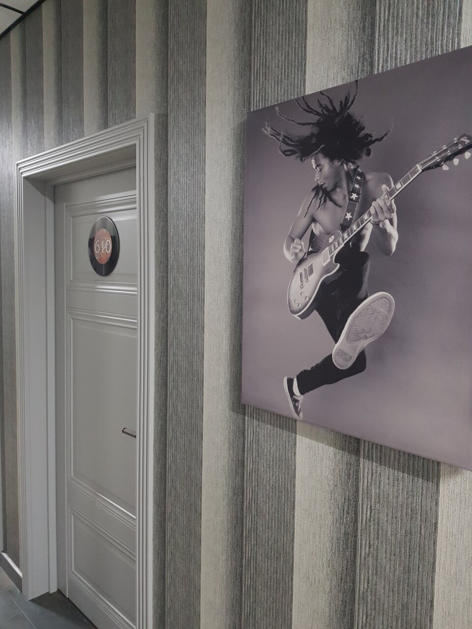 Арт отель. Всё по стилю рок н ролл. На втором этаже стрип бар с тетями