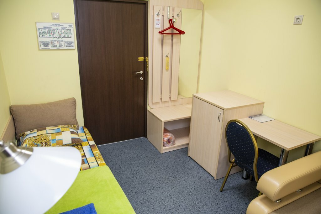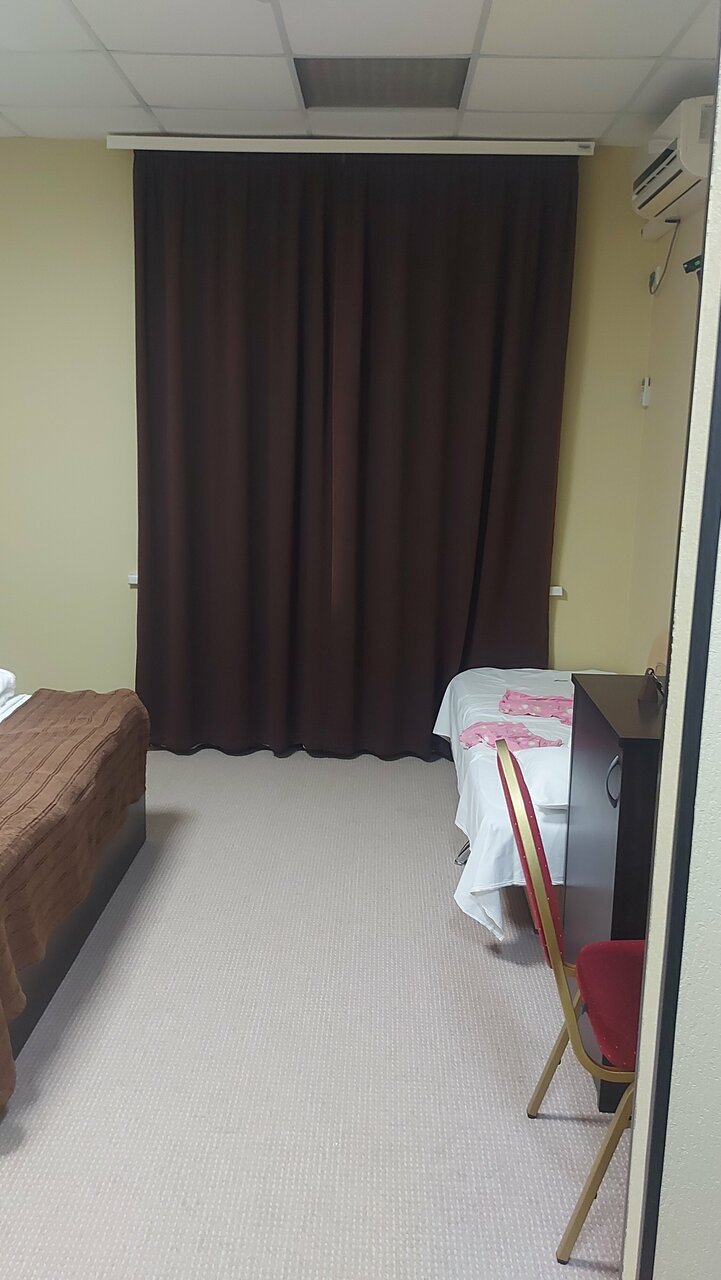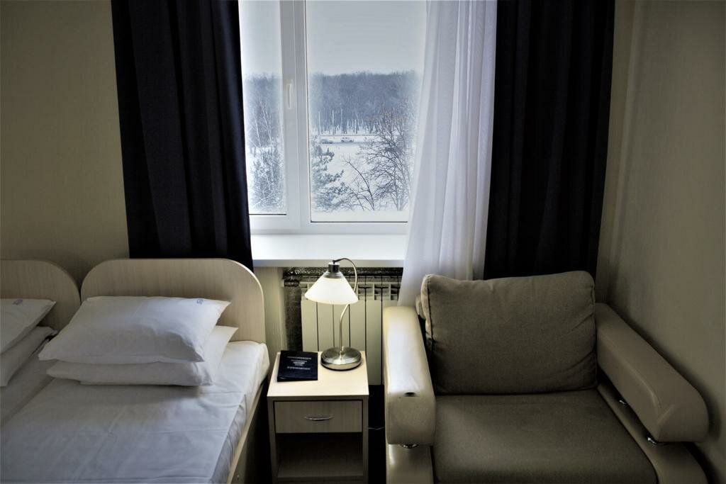 Скромненько, чистенько приветливый персонал. Есть кафе цены нормальные, еда, как дома. Выбор конечно не большой, но голодным не останешься. Остановка 5 минут ходьбы. От центра 40 минут на автобусе. Вокруг гостиницы имеется небольшой скверик, дорожки, но не хватает фонарей. Рядом есть шашлычная, запах от которой в номере. В целом цена= качеству. Если удобно по расположению и без изысков, то рекомендую.