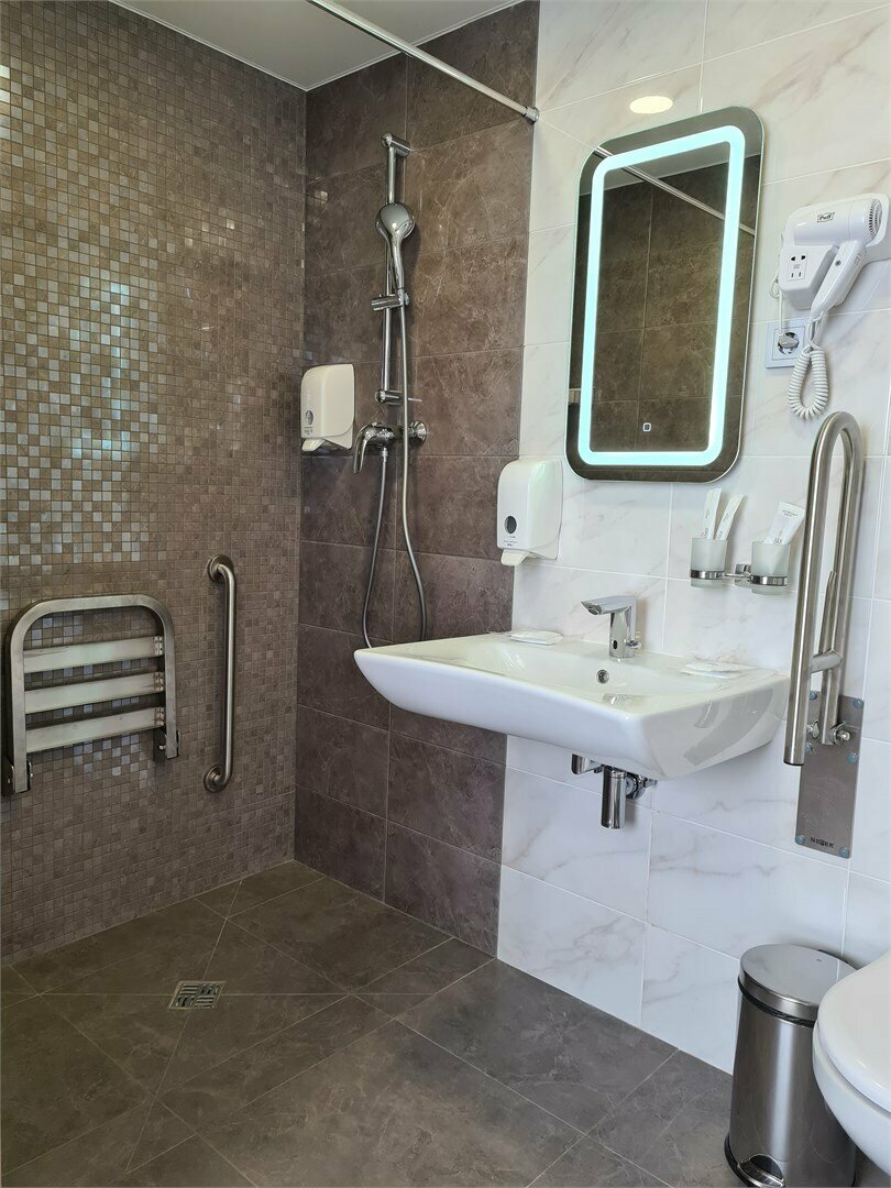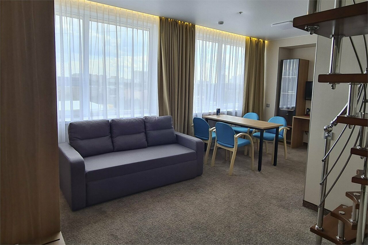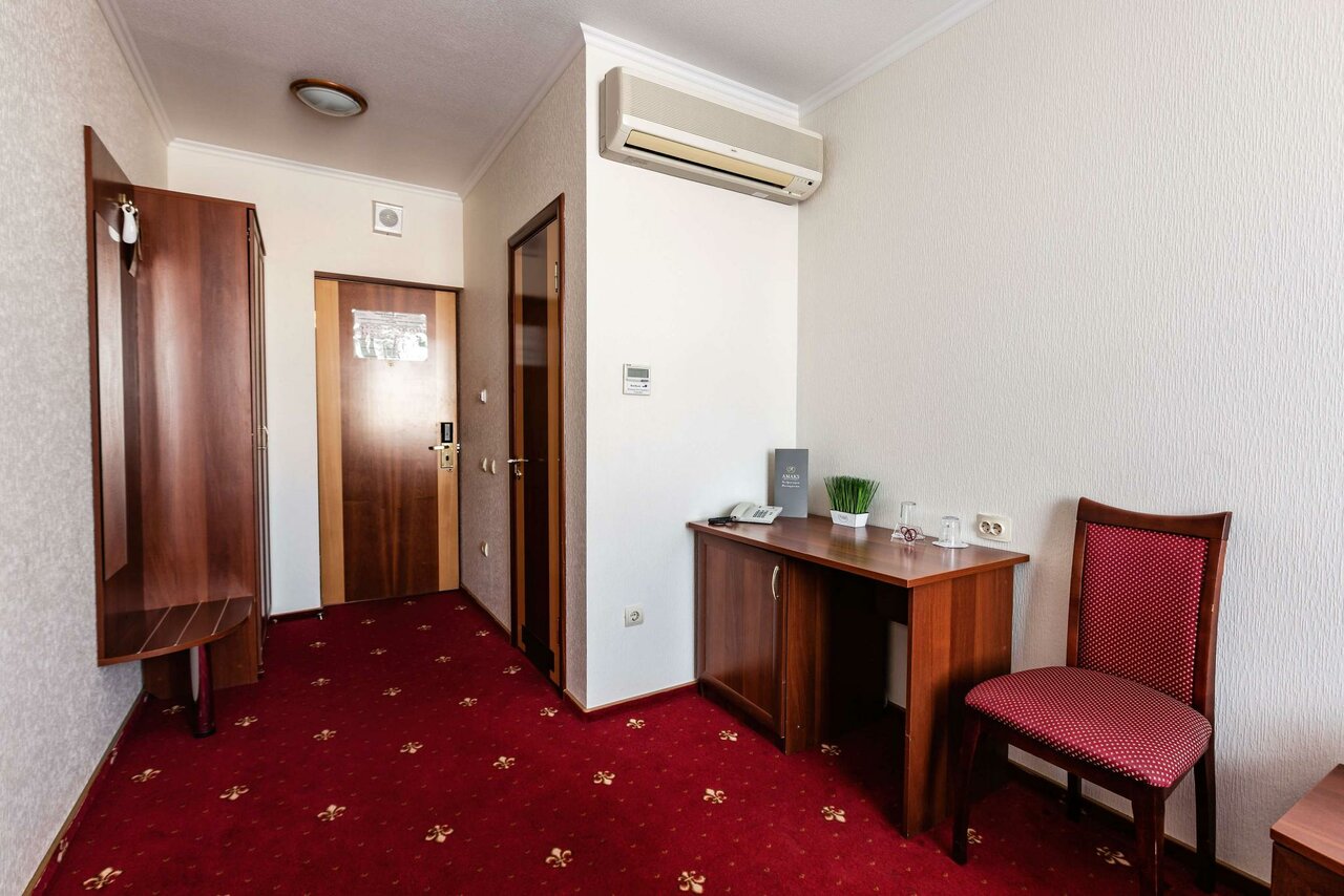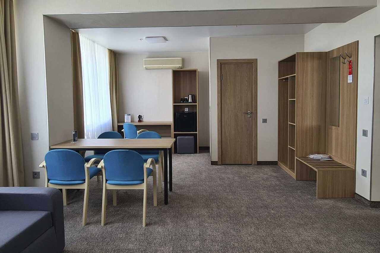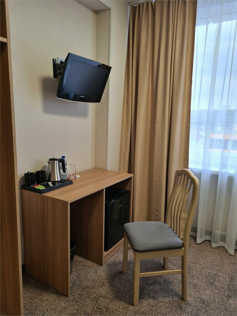 Из плюсов: шикарные завтраки, шведский стол, еда вкусная, ассортимент на любой вкус, приятно удивил мёд в сотах, морковный фреш и робот- официант, собирающий посуду. Кровати удобные, номера чистые. Пожалуй это всё, что понравилось. Очень всё уставшее, давно пора освежить помещения. Красные ковролины в лилиях и интерьер в целом угнетают, санузел настолько тесный, что на унитаз можно присесть только поперёк, прямо сесть невозможно, раковина не позволяет. Полотенца старые, дыр нет конечно, но вид неприятный. Душ подвешен так, что вода попадает на тебя только если включить минимальный напор, чуть больше включишь и лупасит в стенку кабинки. В кафе (открытая веранда) при отеле отвратительное обслуживание, там персоналу просто по барабану на всё. Больше там не остановлюсь.