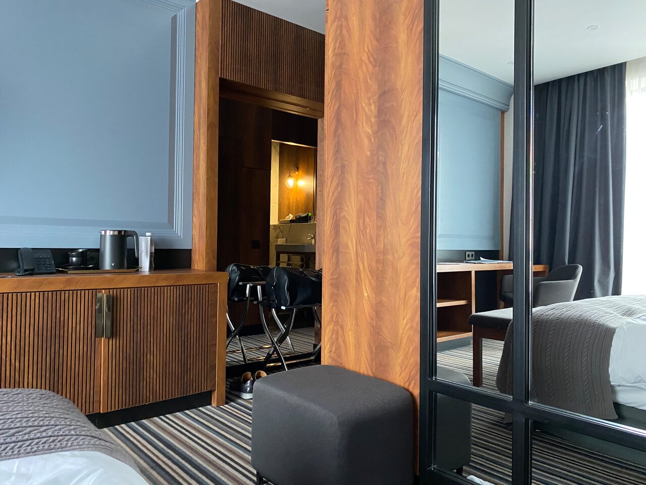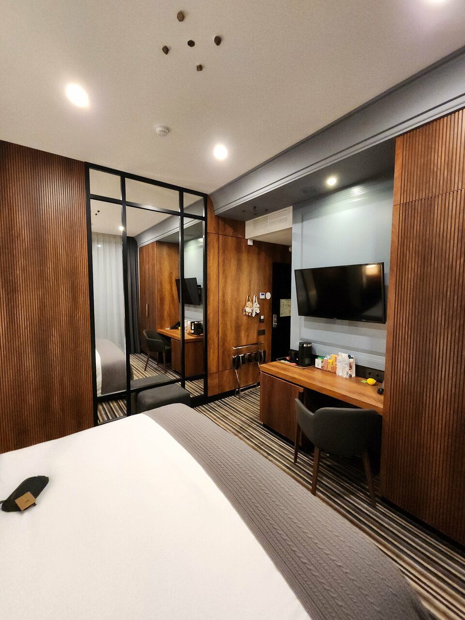 И так, за 7 тыс в сутки(без завтрака) что мы получаем: 1. Парковка 1000/сутки- это главная проблема, первый раз вижу чтоб гости отеля платили за парковку. 2. Вид смотрите фото 3. Неработающий свет в коридоре, ходили с фонариком искали как пройти 4. Грязные зеркала в номере, во время уборки их не протирают 5. Один раз сломался лифт, пришлось долго ждать 6. Запах сигарет в туалете постоянно Ну и скудный тренажерный зал Из плюсов: тихо, красивый номер, продукция Зелински, милые игрушки на дверях 🙂