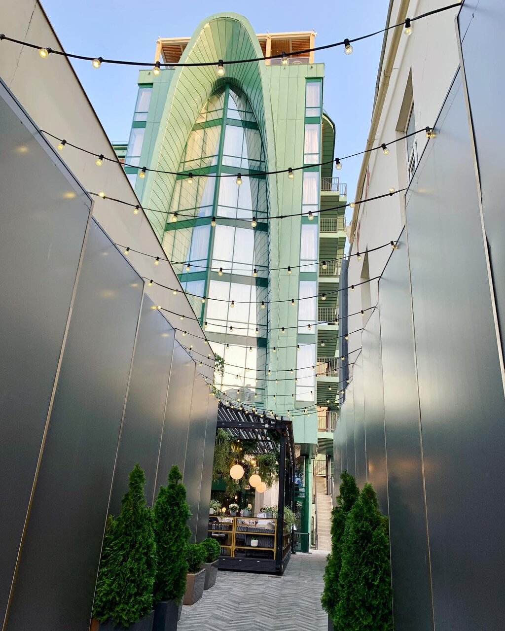 Отличный сервис, прекрасный ремонт, свежо, чисто, 2 рестика — один внизу, второй на крыше, кальяны на 4, меню на 4,5, есть парковка, но с борзым охранником, надо бронировать заранее. Постель и подушки на 5. Локация удобная, в шаговой доступности лучшие рестораны, бары, клубы, набережная. Рекомендую.