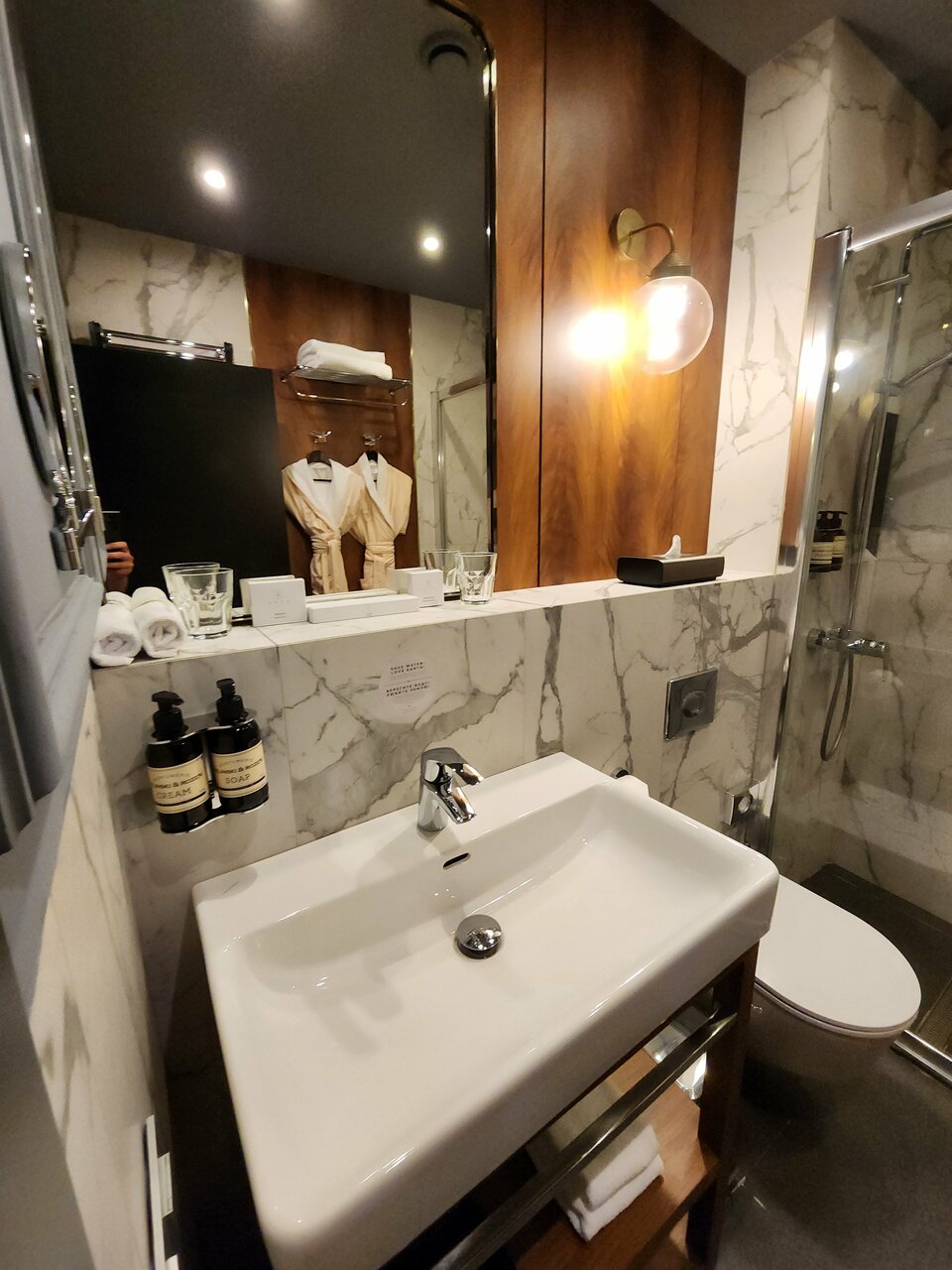 Отель на троечку. Выбрали этот отель потому что гинза, но жёстко прогадали. Надеялись на вкусную кухню и какие-то приятные завтраки, но именно этого и не было. Завтрак по меню, что в целом норм, но завтрак похож на бизнес ланч… Два наименования из еды и два из напитков. Мне хватило и одного блюда, но… Соков нет, два кофе только если воды не брать. В общем если руки мыть с мылом будете, то чай без сахара будет )) Отель, как здание и дизайнерское решение, сделан хорошо. Номера крохотные, но милые. Правда, обещали кофемашину в номере, но мы ее не нашли. Есть мини Алиса, но непонятно зачем: с нее ничем управлять нельзя, только музыку послушать. Кровать большая, с виду хорошая, но я спал плохо. Одна подушка огромная, другая маловата, но тут у всех все индивидуально… В общем, разочарование как в детстве: фантик красивый, а конфета невкусная (((