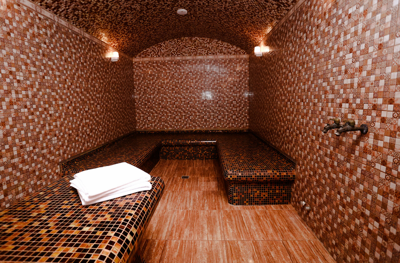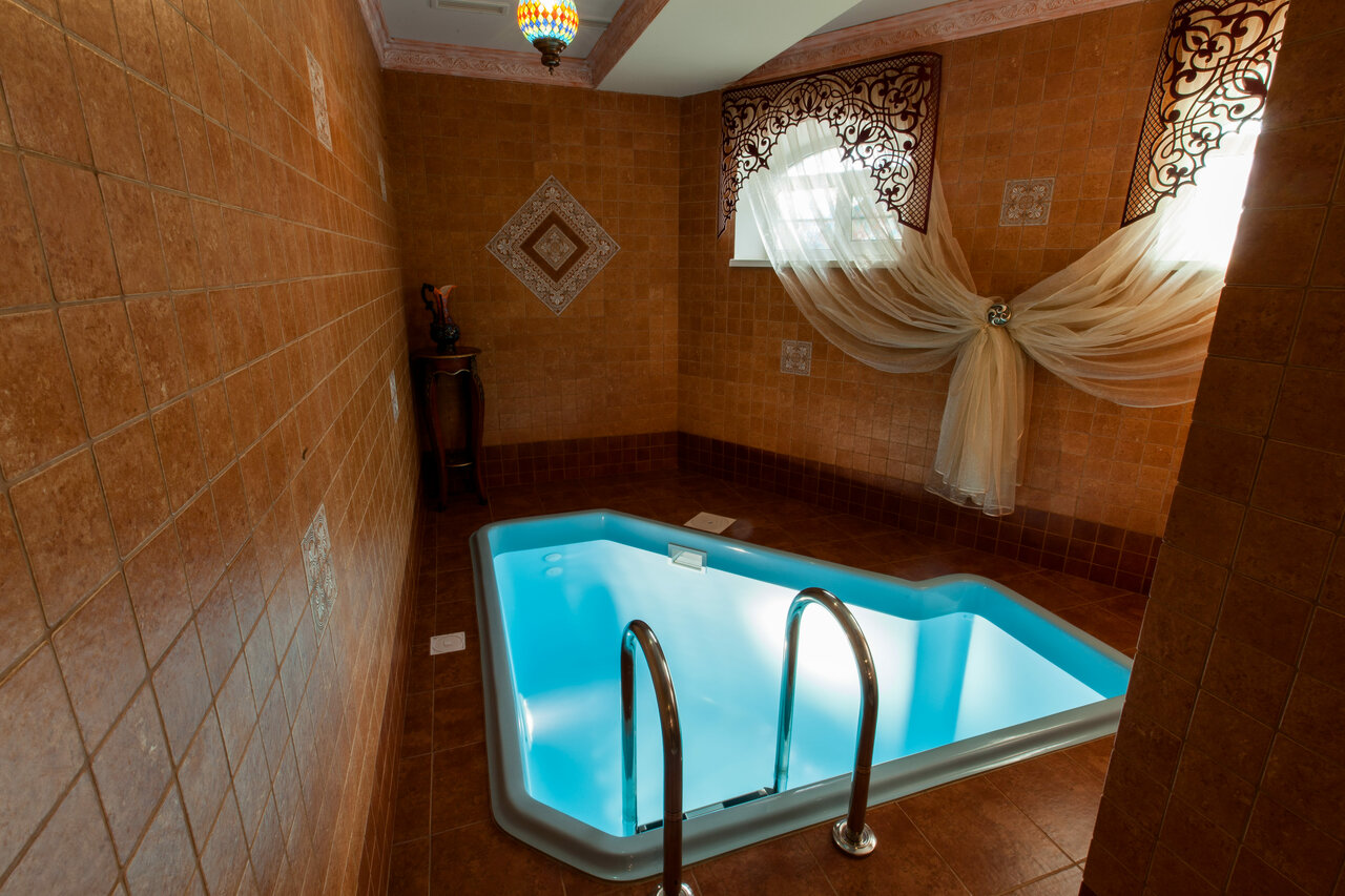 Малый банный комплекс (хамам, купель, комната отдыха, предбанник, душевая).Большой банный комплекс (хамам, сауна, купель, комната отдыха, предбанник, душевая). Услуги банщика по предварительной записи.