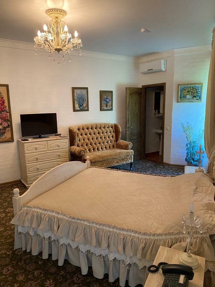 Райский уголок на Левом берегу Днепра. Очень красивые интерьеры в номерах. Халаты, тапочки, вода. Приветливый администратор. Приятная территория ресторана с фонтанами. Рекомендую