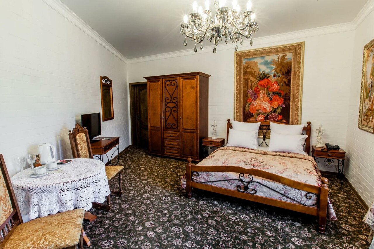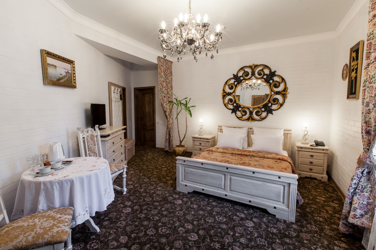 Плюсы: 1. Очень приятный интерьер отеля, уютно, красные шторы, картины. Номер прям радовал глаз; 2. парковка при отеле; 3. Территория парковая при отеле, где можно позавтракать и пообщаться с живым лебедем, который там проживает) 4. Приветливая и гостеприимная девушка на ресепшн. Нас быстро заселила и все рассказала; 5. Хорошая шумоизоляция! Выспались от души. 6. В номере есть все необходимое — щетка зубная, шампуни, фен. Минусы: 1. Очень слабый напор в душе. В раковине напор сильный, а вот в душе очень слабый. 2. Электроприборы все выключены из розеток. Розетки в номере очень странные, что-то работает, что-то нет. В итоге приходилось подбирать рабочие, чтобы включить дополнительный свет и зарядить телефон; 3. Завтрак на 1 человека (мужчину) очень скромный. Своих денег он не стоит; 4. Написано на ресепшн, что после 23 в отеле не шуметь, но при этом музыка из ресторана орала до 00. 5. Слабая вытяжка в ванной.