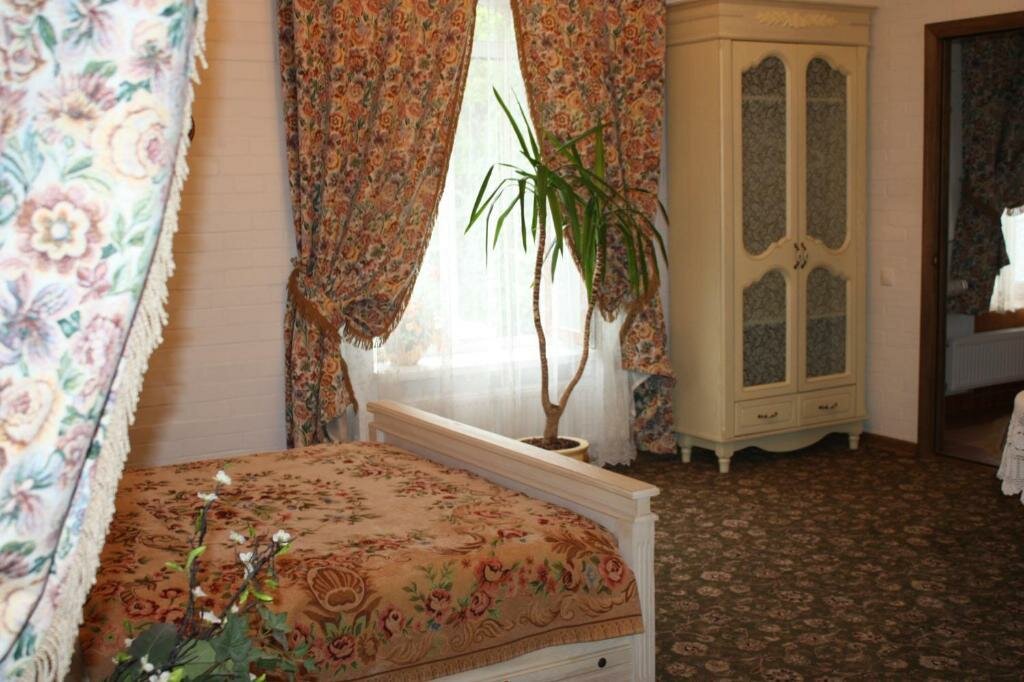 Небольшая гостиница (12 номеров), бронь по телефону, красивая территория и хороший ресторан, своя парковка