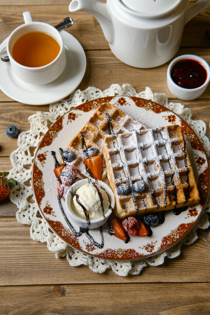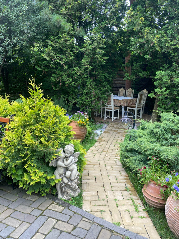 - Живописное место для завтрака (сад, пруд).