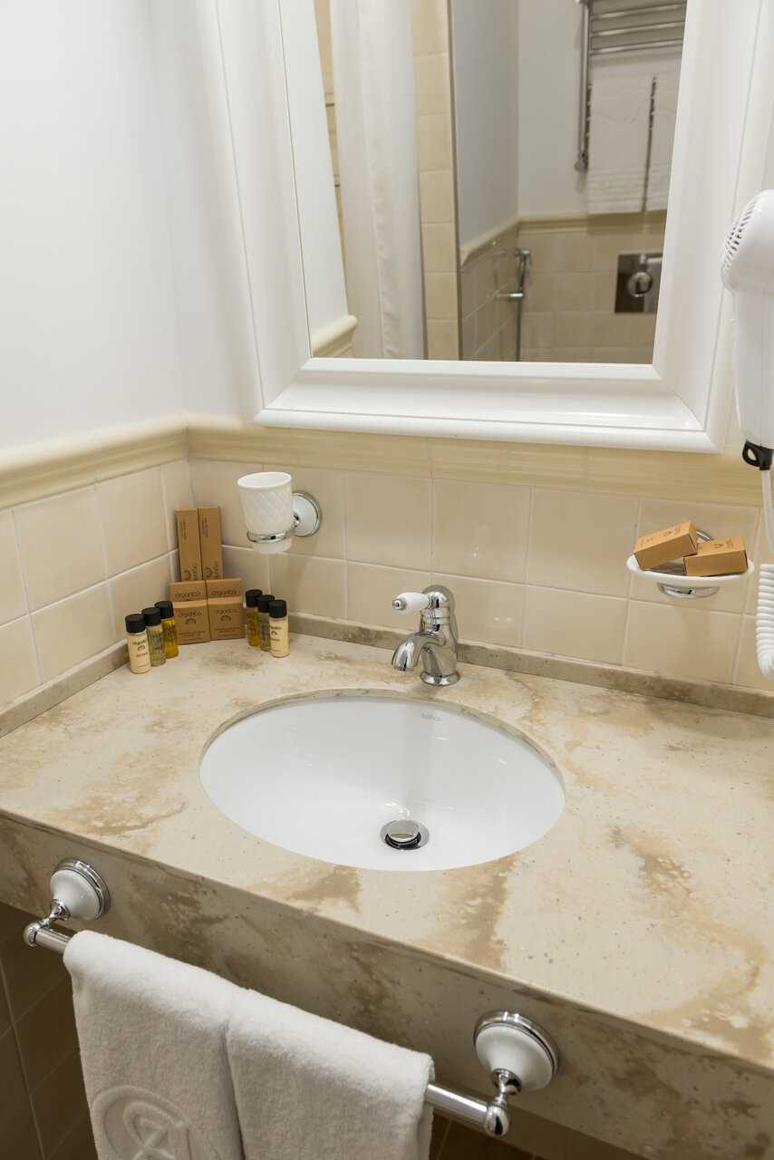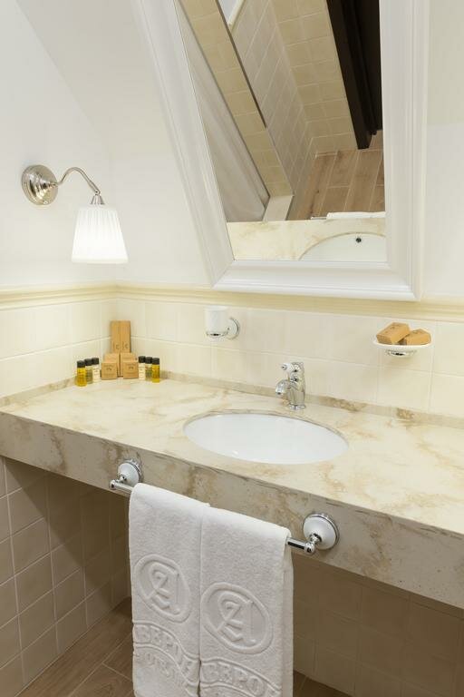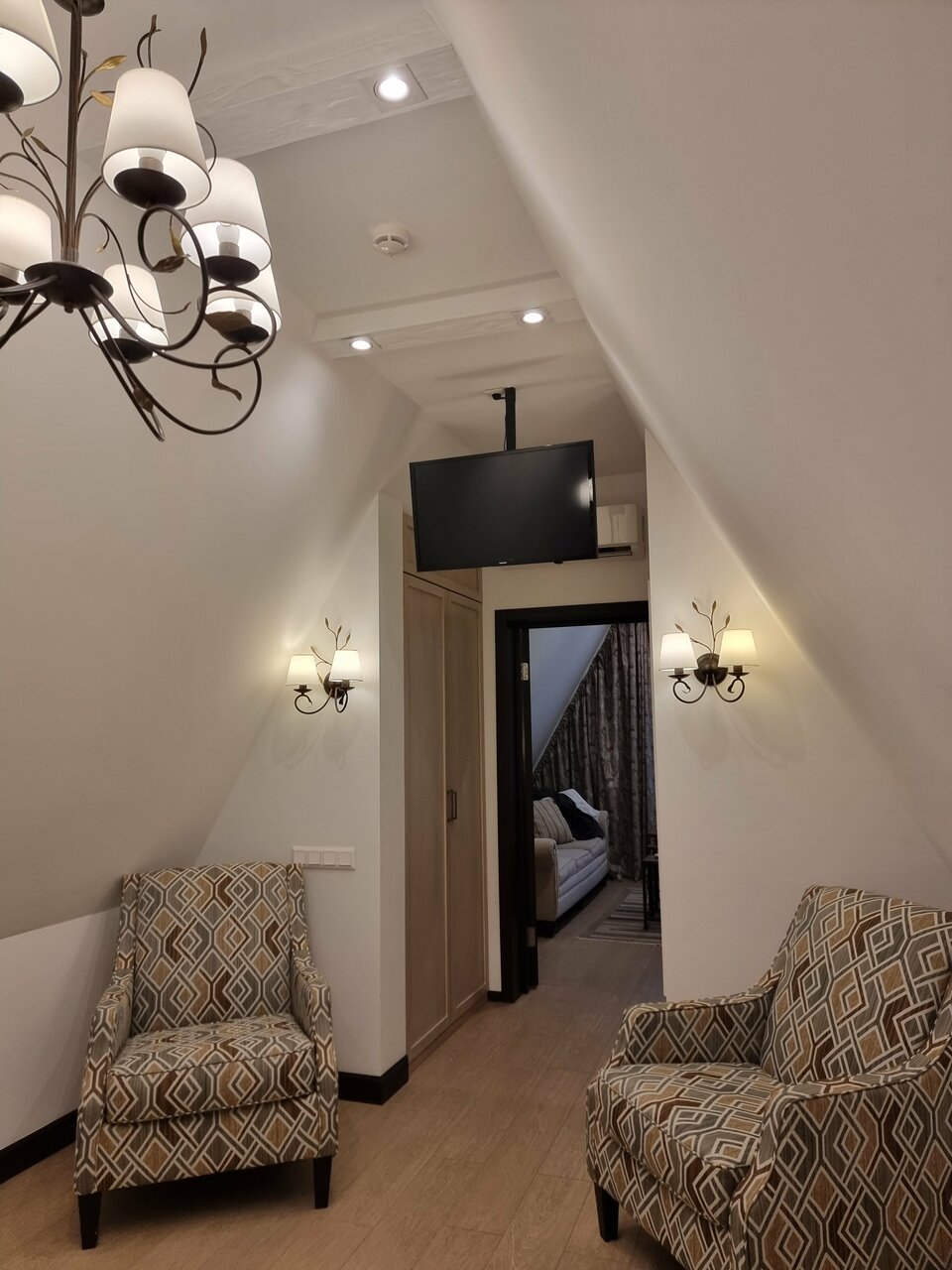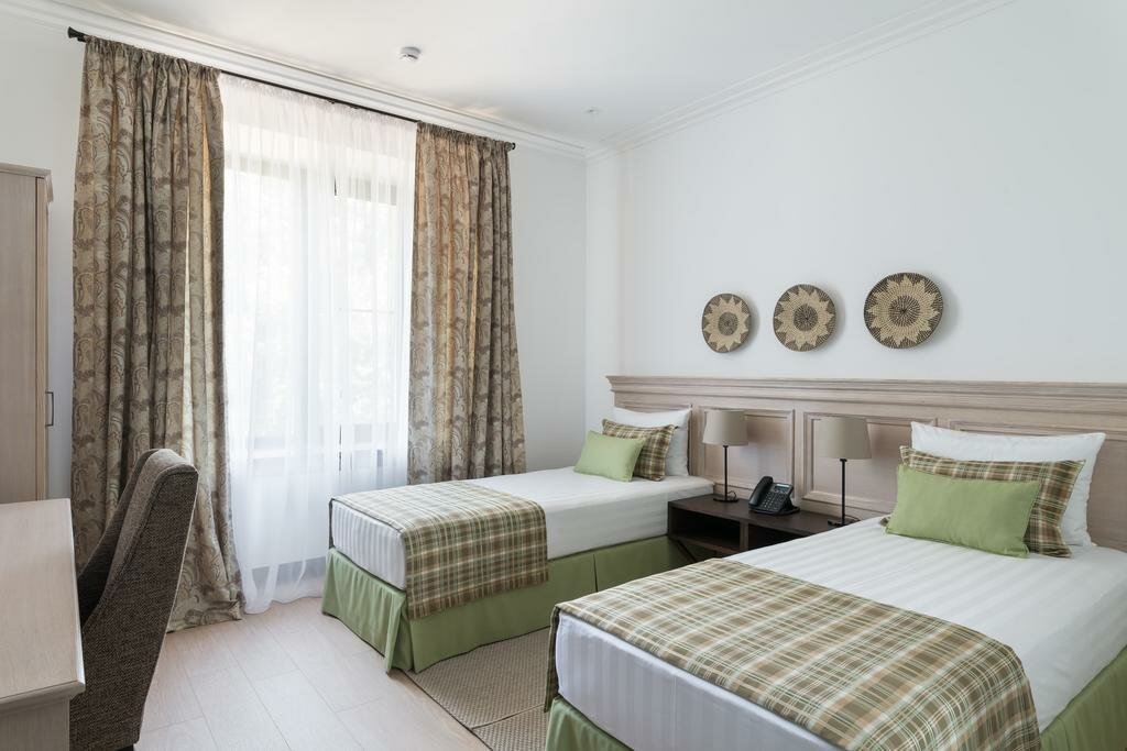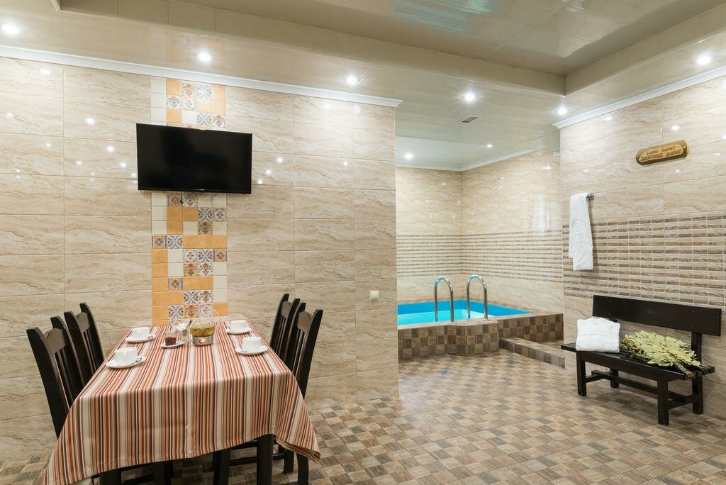Удобства: — Номера с кондиционером, звукоизоляцией, Wi-Fi, телевизором, мини-баром и феном. — Крытый бассейн, баня, ресторан, бар, летняя веранда и терраса. — Бесплатная парковка, бизнес-центр, конференц-зал, детская площадка. — Услуги: ускоренная регистрация, камера хранения, прачечная, сейф.
