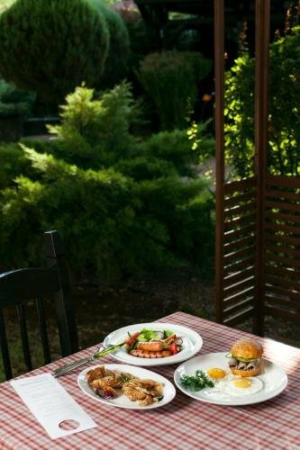 - Красивый интерьер.; Вкусная еда.; Большие порции в ресторане.; Удобное расположение (близко к трассе М4..; Охраняемая парковка.