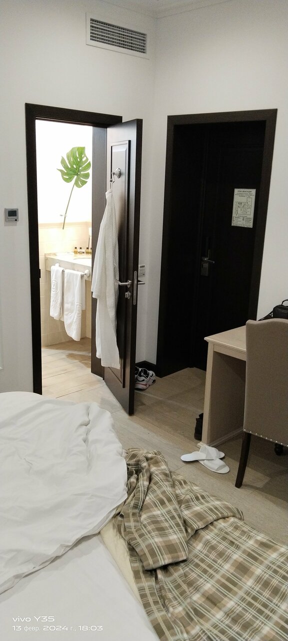 Были в октябре 2022 года. Останавливались на ночь по пути с юга. Удобное расположение на левом берегу Дона, позволяющее легко выехать на трассу М4. Собственная охраняемая парковка. Уютный двор. Имеется ресторан. Очень чистые номера, с отличной мебелью, большим санузлом. В номере были абсолютно все необходимые аксессуары. Завтрак заказали с вечера. Меню большое! При этом это не ‘фаст-фуд’, а полноценные ресторанные блюда с соответствующей подачей. Приятно удивило, что завтрак можно заказать с подачей в номер на определённое время.