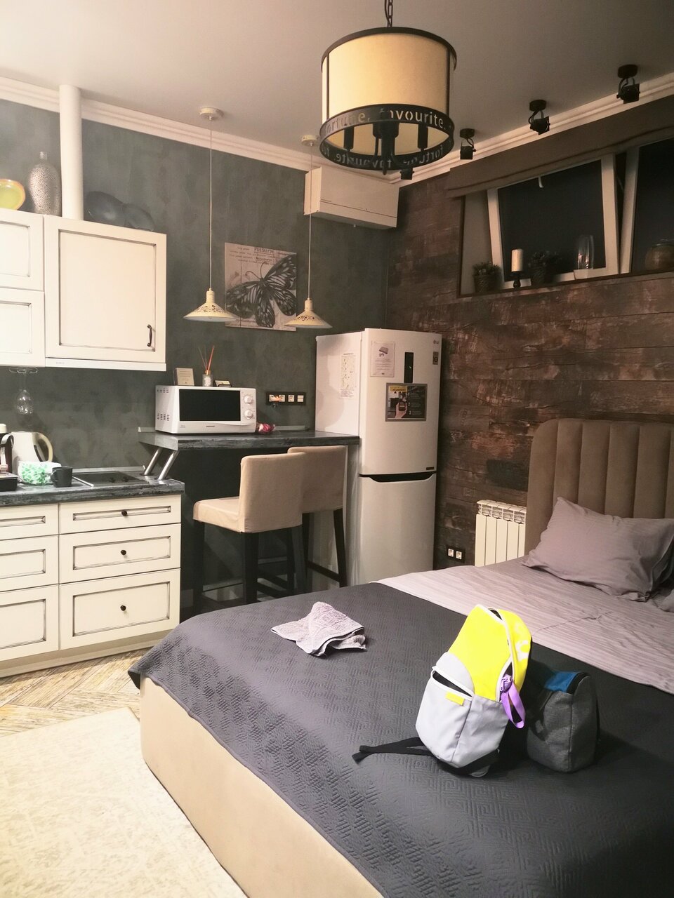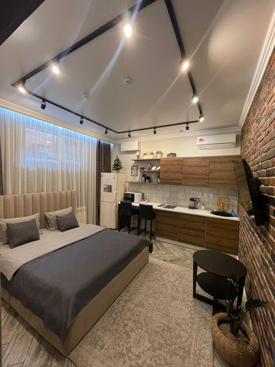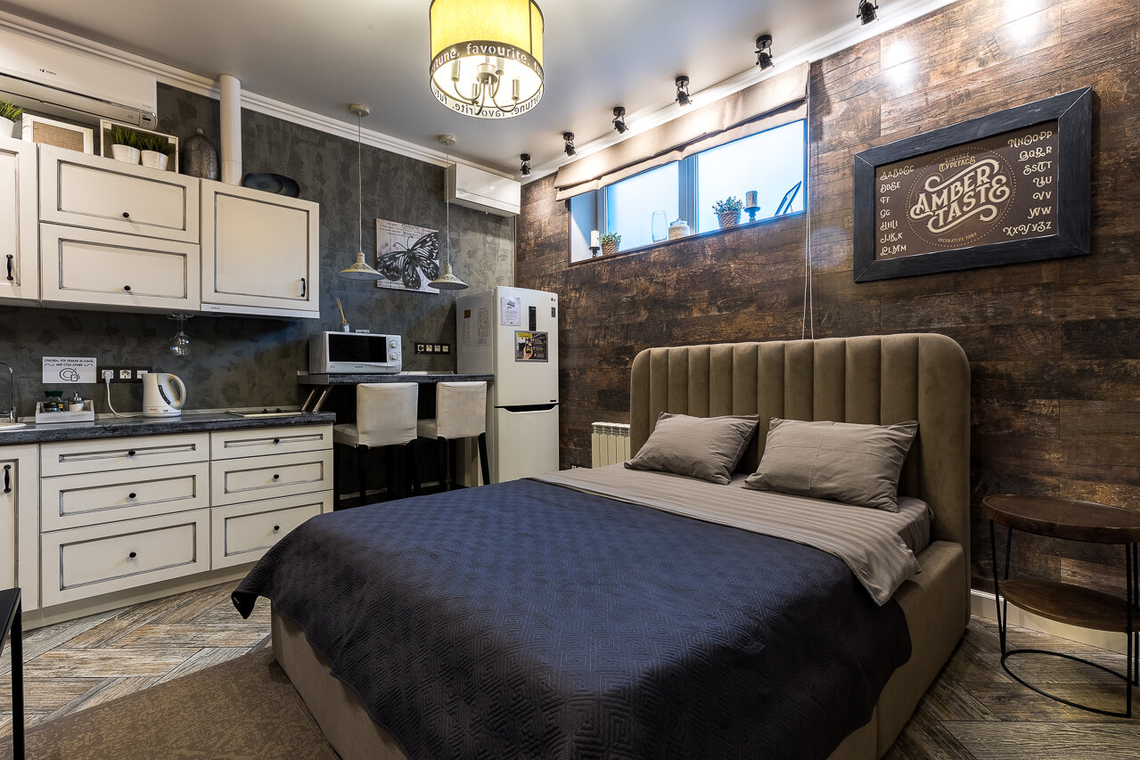 Отличные апартаменты, отзывчивый хозяин и персонал. Очень понравился стиль интерьера. Обязательно вернемся и не раз) Спасибо