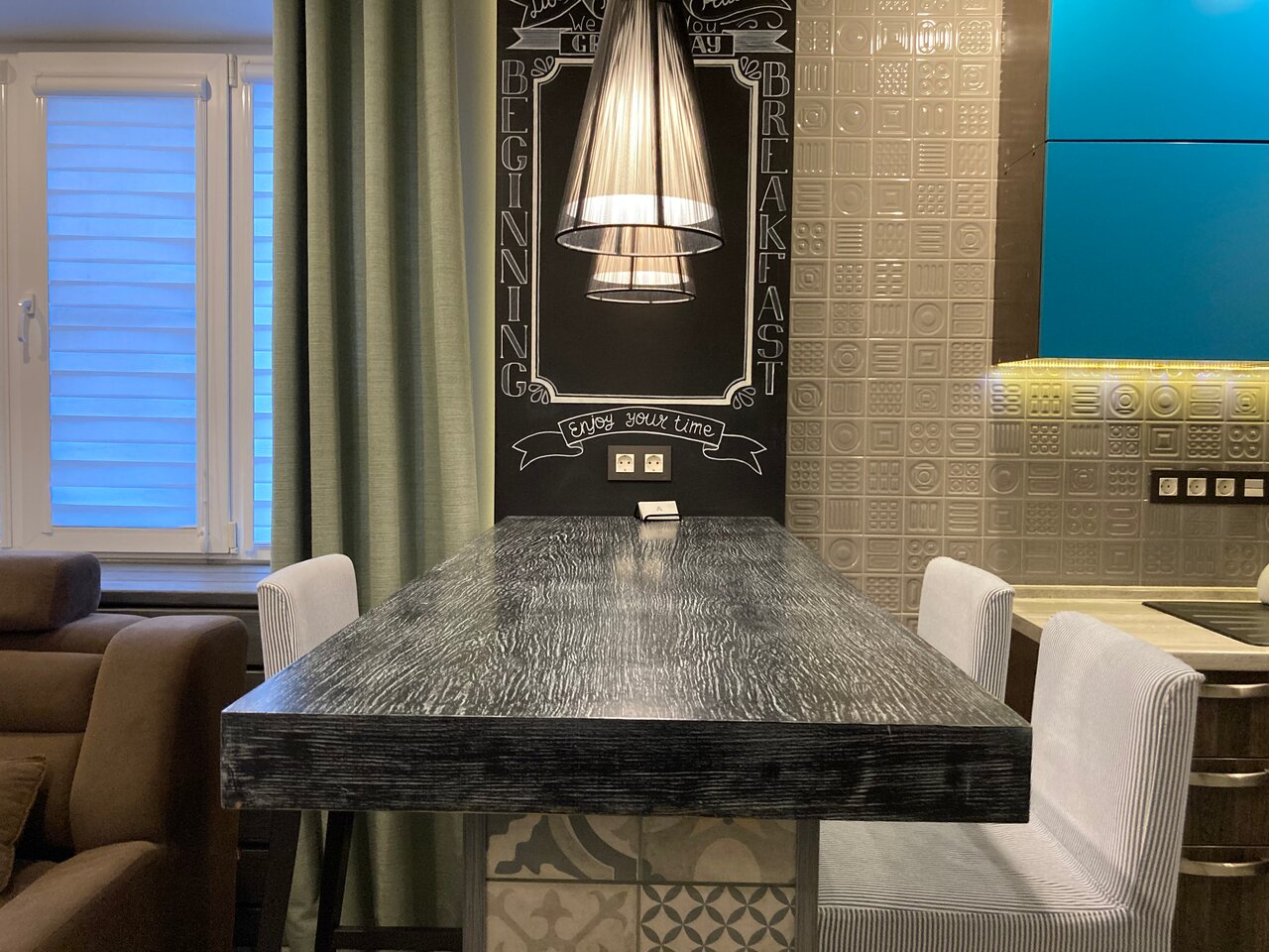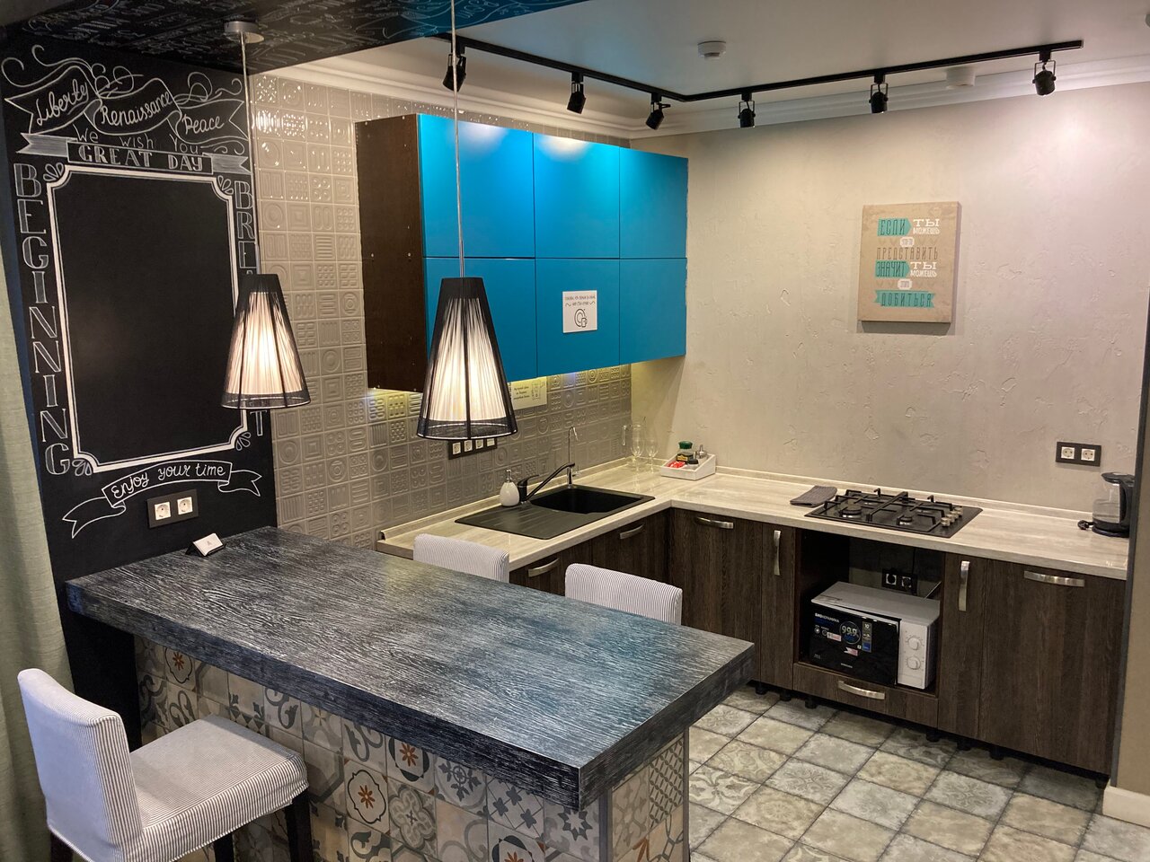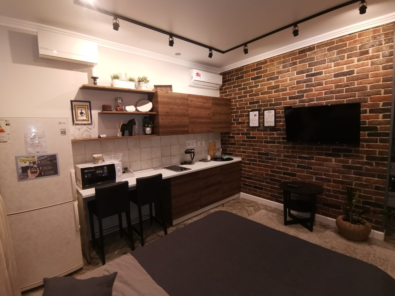 Отличные апартаменты, отзывчивый хозяин и персонал. Очень понравился стиль интерьера. Обязательно вернемся и не раз) Спасибо