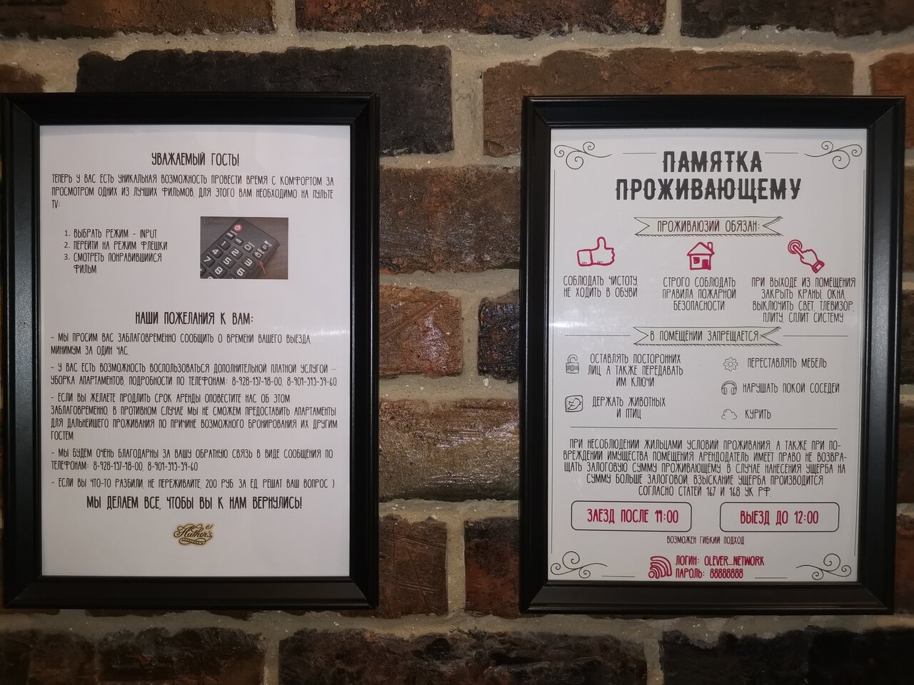 Номера (от 3000 до 5000 ₽/ночь) оснащены кухонным уголком, кондиционером, Wi-Fi, телевизором, холодильником и звукоизоляцией. В каждом номере есть санузел, фен, чайник и посуда. Дополнительно предоставляются халаты и тапочки.