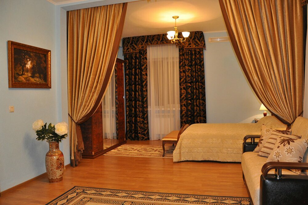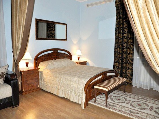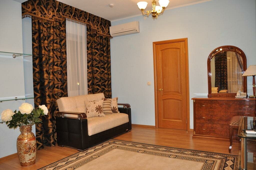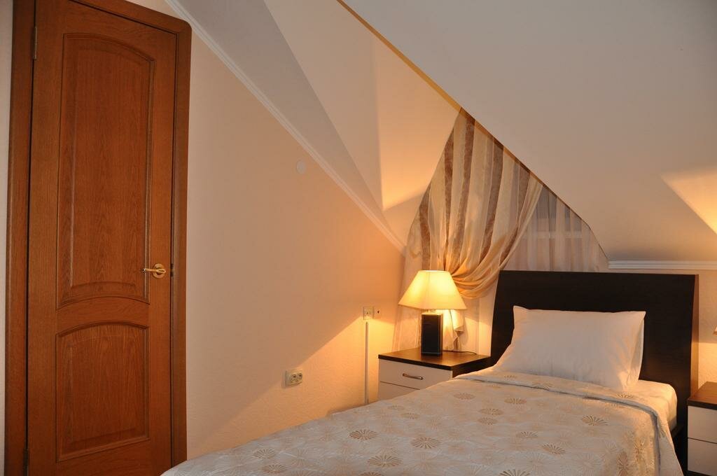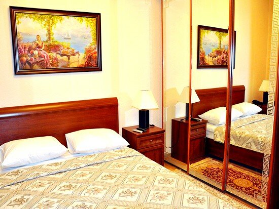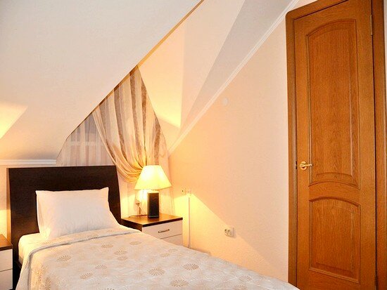 Снимали номер переночевать по дороге на юг. Номер ‘двухкомнатный бизнес-люкс’, пугала заявленная площадь — 25м, но на удивление вполне комфортно для 2 взрослых и двух детей 8+12, необходимый минимум есть — чисто, кондиционер, теплый пол в с.у., завтрак, за свою стоимость можно простить отсутствие лестницы на 4 этаж, расположение рядом с рынком, конечно не 5* но выбирать особо было не из чего — за пару дней до все уже было раскуплено. В целом — рекомендую.
