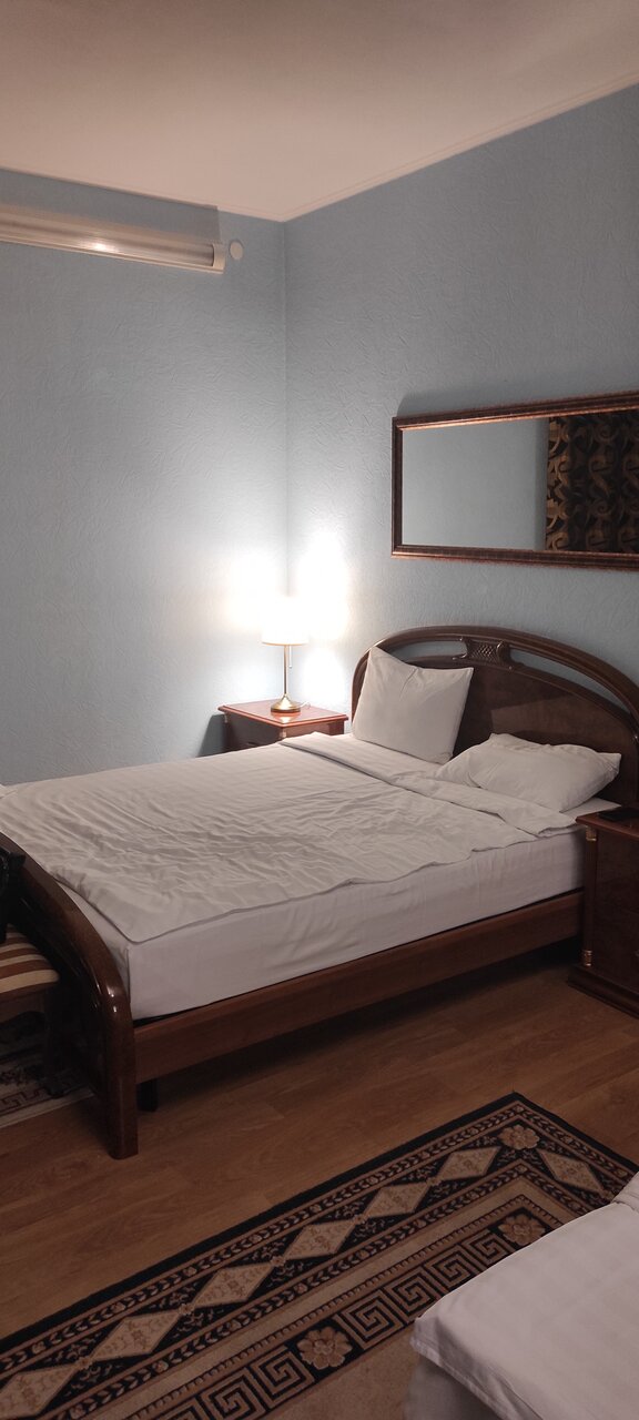 Большие комфортные апартаменты площадью около 45 кв.м., вместимостью до 5 человек (возможно доп. место) В номере есть:• двуспальная и односпальная кровати • диван • шкаф, две тумбочки • журнальный столик, зеркало🪞• телевизор •