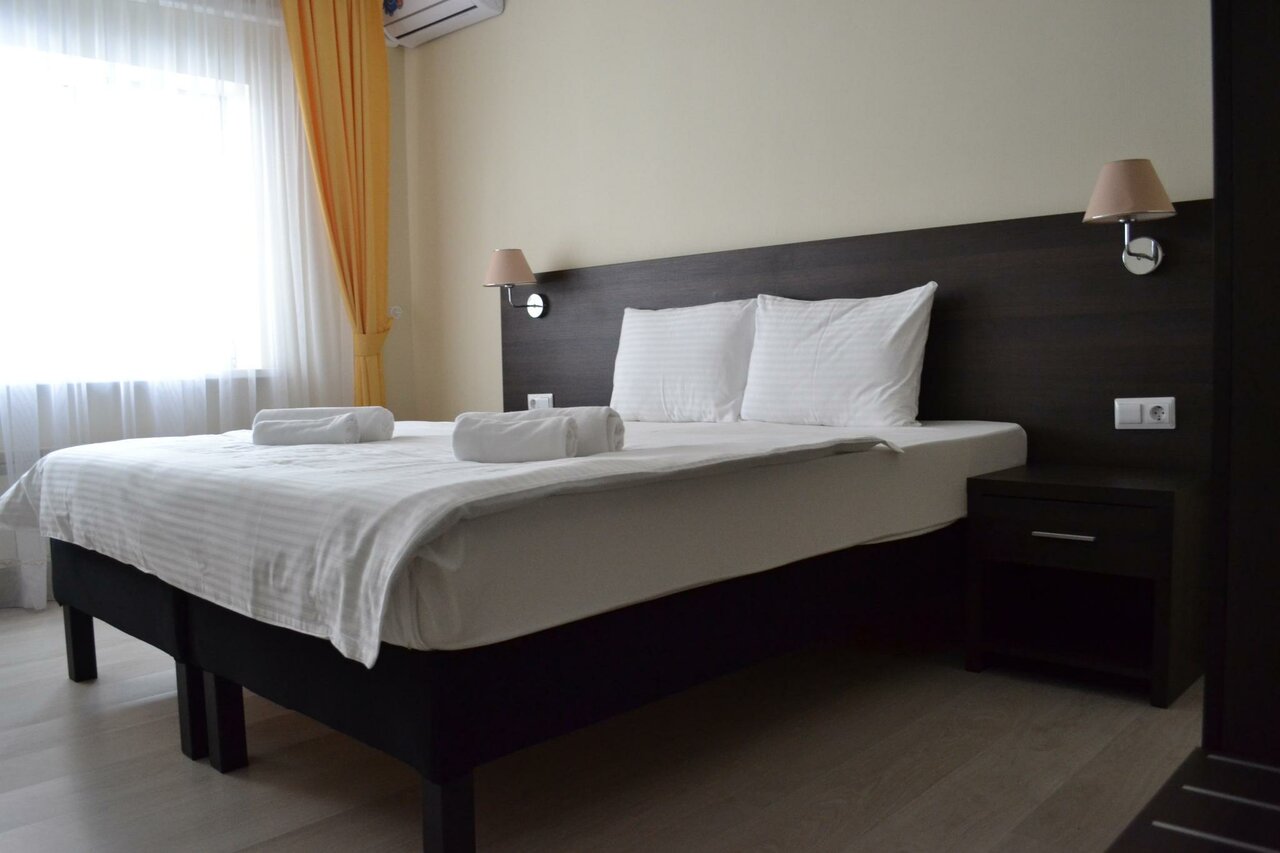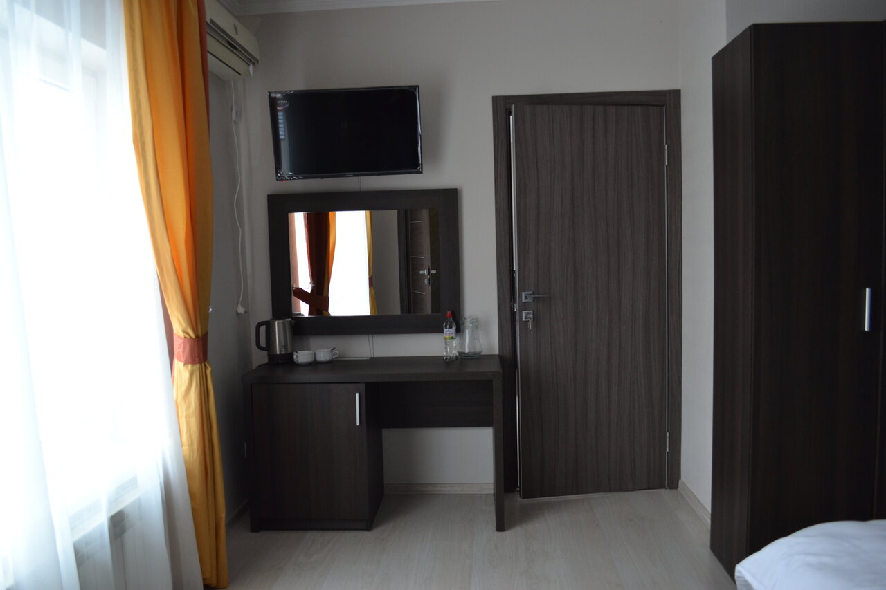 Уютный двухместный номер 40 кв.м. с видом на внутренний дворик. Оснащен всем необходимым для комфортного отдыха. Одна двуспальная или две односпальных кровати (указать при бронировании), кондиционер, телевидение и Wi-Fi, холодильник.